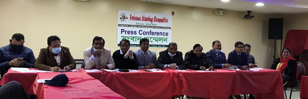 সিটির জ্যাকসন হাইটসের পালকি পার্টি সেন্টারে গত ৩১ অক্টোবর শনিবার সন্ধ্যায় আয়োজিত সংবাদ সম্মেলনে স্বাগত বক্তব্য রাথেন ফোবানা ষ্টিয়ারিং কমিটির কার্যকরী সেক্রেটারী কাজী সাখাওয়াত হোসেন আযম। এরপর লিখিত বক্তব্য পাঠ করেন ফোবানার ভাইস চেয়ারম্যান আলী ইমাম শিকদার। পরবর্তীতে উপস্থিত সাংবাদিকদের বিভিন্ন প্রশ্নের উত্তর দেন ফোবানা ষ্টিয়ারিং কমিটির চেয়ারম্যান মোহাম্মদ হোসেন খান, ফোবানা কনভেনশন-২০১৯ এর কনভেনর শাহ নেওয়াজ ও সদস্য সচিব ফিরোজ আহমেদ সহ ডা. মাসুদ রহমান, গিয়াস আহমেদ, কাজী আশরাফ হোসেন নয়ন ও আলী ইমাম শিকদার। এসময় ফোবানা কর্মকর্তাদের মধ্যে সৈয়দ এনায়েত আলী, ওয়াহিদ কাজী এলিন, মাকসুদুল হক চৌধুরী, ডা. নার্গিস রহমান, শাহাদৎ হোসেন সবুজ প্রমুখ উপস্থিত ছিলেন।