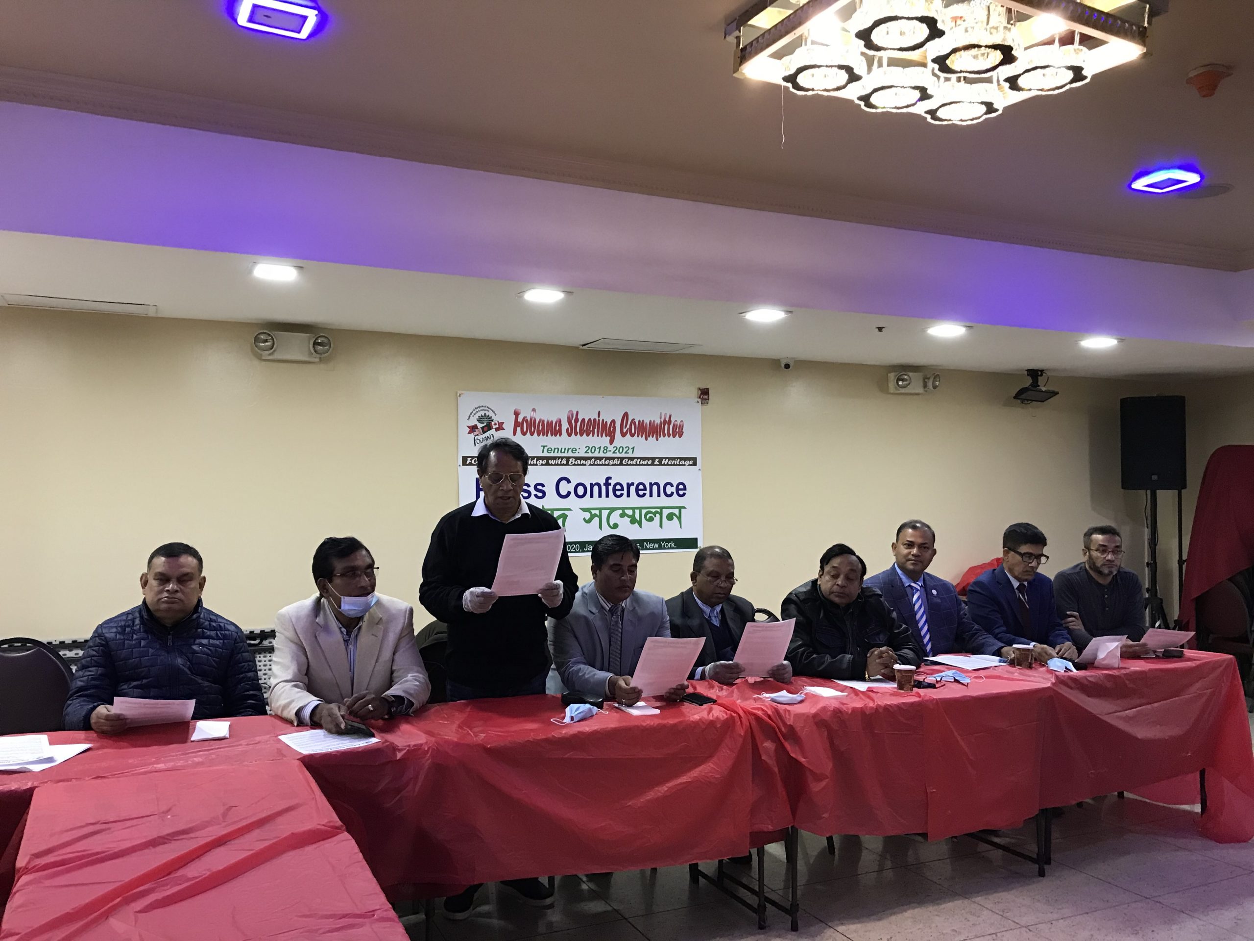 সংবাদ সম্মেলনে লিখিত বক্তব্যে করোনায় মৃত্যুবরণকারী প্রবাসী বাংলাদেশীদের প্রতি গভীর শ্রদ্ধা ও শোক প্রকাশ জানিয়ে বলেন, ফোবানা এই নিউইয়র্কের ৮টি স্পটে এন্টি বডি টেষ্টের ব্যবস্থা করেছে। এই সব টেষ্টে বিপুল সংখ্যক দেশী বিদেশীরা অংশগ্রহণ করেছেন। ফোবানা নর্থ আমেরিকায় বাংলাদেশী জনমানুষের বহু বছরের একটি পুরানো এবং ঐতিহ্যবাহী সংগঠন। ২০১৯ এর নিউইইয়র্কস্থ ফোবানা কনভেনশন ছিল সকল দিক থেকে একটি সফল ফোবানা কনভেনশন। সকল বিবেচনায় আমরা আমাদের কনভেনশন স্বার্থকভাবে সম্পন্ন করে ছিলাম। উল্লেখিত কনভেনশন করতে গিয়ে আমাদের লক্ষ লক্ষ ডলার খরচ করতে হয়নি। আমরা লক্ষ লক্ষ ডলারের শ্রাদ্ধ এবং লক্ষ লক্ষ ডলারের ঋণের চাকার নীচে পড়ে পিষ্ঠ হইনি। শোনা যায়, ফোবানা করতে গিয়ে, ঋণের বেড়াজাল থেকে আজও কারো কারো মুক্তি মিলেনি। অনেকে পাওনা টাকার জন্য ধরণা দিচ্ছেন। এনিয়ে আপনাদের ও আমাদের মধ্যে অনেক প্রশ্ন উকি ঝুঁকি দিয়েছে। এত বড় কনভেনশনের পর প্রশ্ন থাকাটাই স্বাভাবিক। এই সব নিয়ে আপনাদের মুখোমুখি হওয়ার ইচ্ছা থাকলেও নানাবিধ সমস্যার কারণে তা সম্ভব হয়ে উঠেনি।