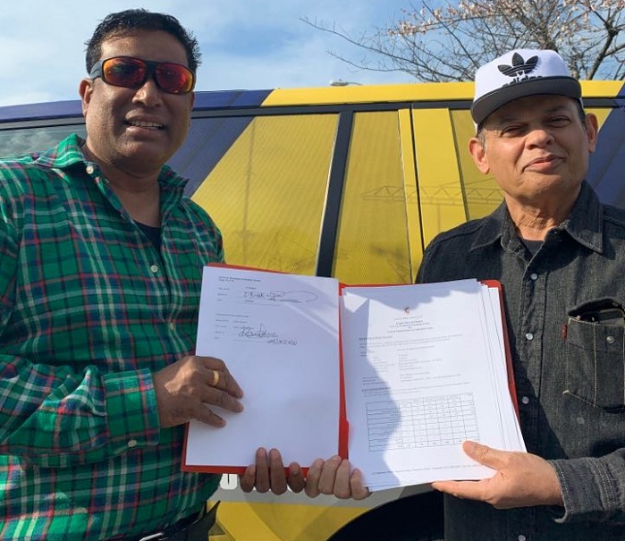 গেলর্ড হোটেল এন্ড ন্যাশনাল কনভেনশন সেন্টার কর্তৃপক্ষের সাথে চুক্তিপত্রের কপি হাতে কনভেনর জি আই রাসেল এবং কোষাধ্যক্ষ ড. ফাইজুল ইসলাম।