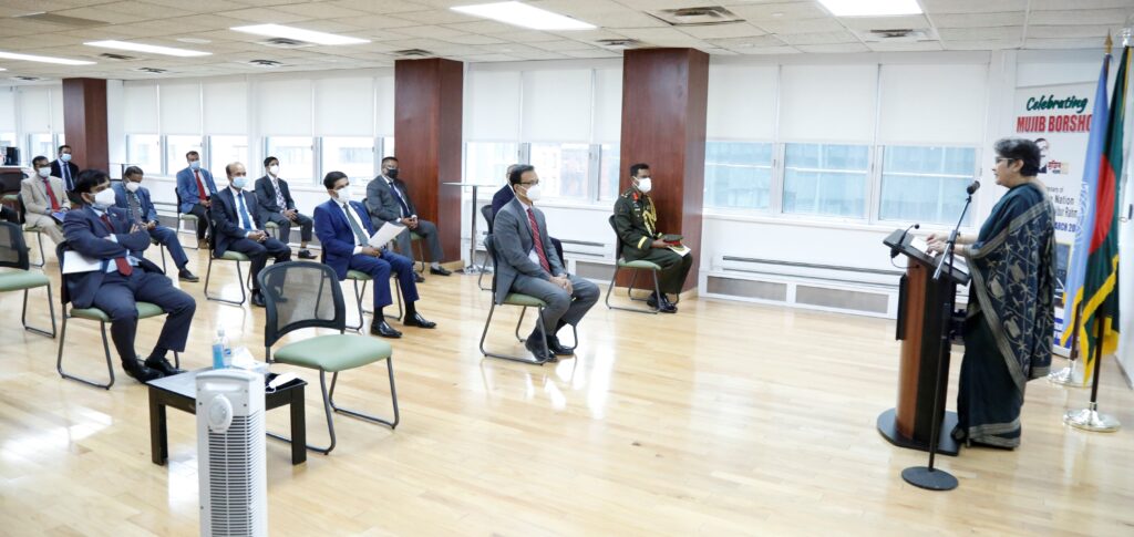 ইউএসএনিউজঅনলাইন.কম, নিউইয়র্ক : জাতিসংঘে বাংলাদেশ স্থায়ী মিশনে ৮ আগস্ট যথাযোগ্য মর্যাদায় সর্বকালের সর্বশ্রেষ্ঠ বাঙালি জাতির পিতা বঙ্গবন্ধু শেখ মুজিবুর রহমানের সহধর্মিনী বঙ্গমাতা শেখ ফজিলাতুন নেছা মুজিব এর ৯০তম জন্মবার্ষিকী উদযাপন করা হয়। কোভিড-১৯ এর প্রেক্ষাপটে স্থানীয় নির্দেশনা অনুযায়ী সামাজিক দূরত্ব মেনে স্থায়ী মিশনের বঙ্গবন্ধু মিলনায়তনে আয়োজিত এ অনুষ্ঠানে মিশনের সর্বস্তরের কর্মকর্তা-কর্মচারি অংশগ্রহণ করেন।