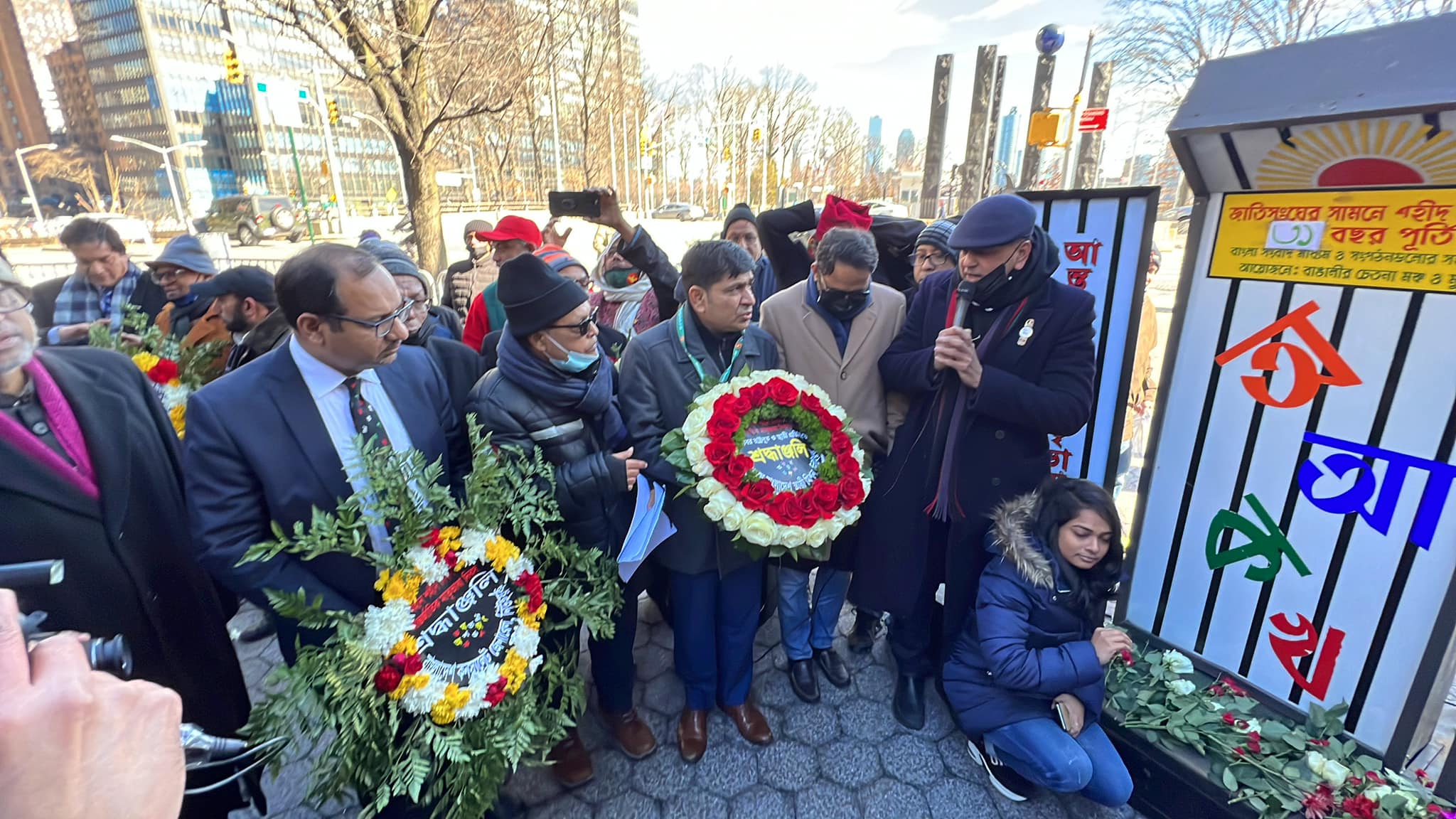 বাংলাদেশের একুশের প্রথম প্রহরের সঙ্গে মিল রেখে জাতিসংঘের সামনে আন্তর্জাতিক মাতৃভাষা দিবস উদযাপন (ভিডিও সহ)