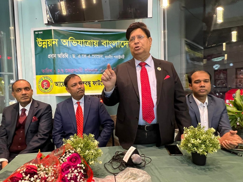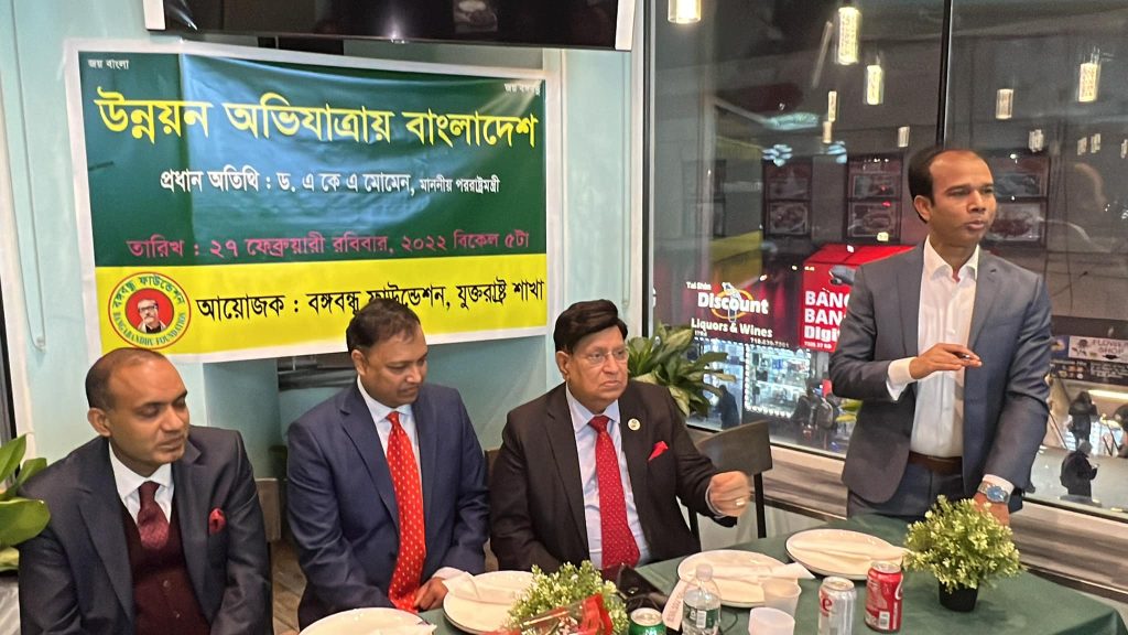 গত ২৭ ফেব্রুয়ারি রোববার সন্ধ্যায় জ্যাকসন হাইটসে ডাইভার্সিটি প্লাজায় মুনলাইট গ্রীলে ‘বঙ্গবন্ধু ফাউন্ডেশন’ যুক্তরাষ্ট্র শাখা আয়োজিত এ সভায় প্রধান অতিথির বক্তব্যে এসব কথা বলেন তিনি। বঙ্গবন্ধু ফাউন্ডেশনের কেন্দ্রীয় সংসদের প্রেসিডেন্ট ড. এ কে আব্দুল মোমেন। তিনি যুক্তরাষ্ট্রে বঙ্গবন্ধু ফাউন্ডেশনকে এ ব্যাপারে সভা-সেমিনার আয়োজনের আহবানও জানিয়েছেন।