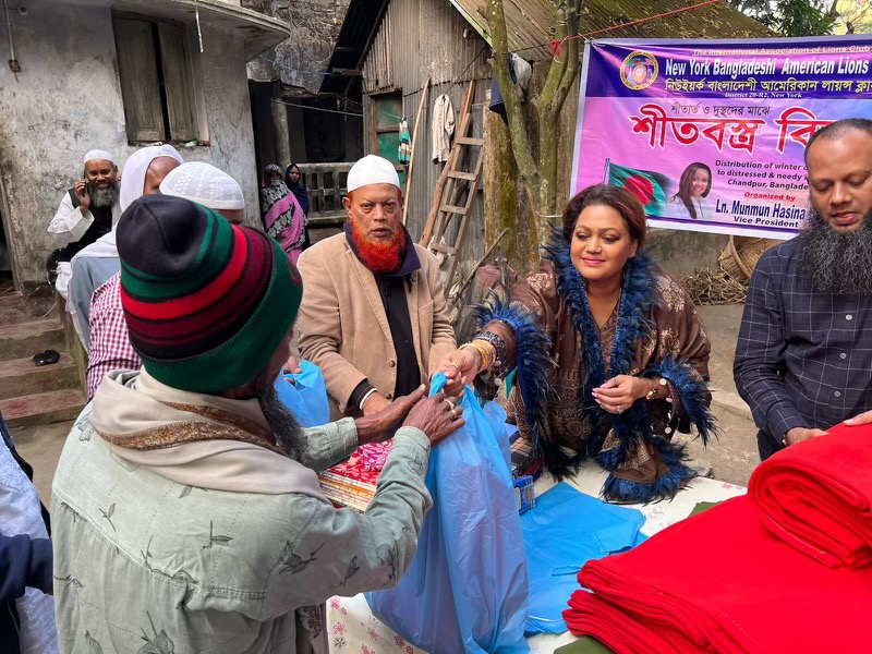 বাংলাদেশের চাঁদপুরে শীতার্তদের মাঝে কম্বল, লুঙ্গি ও শাড়ি বিতরণ লায়ন মুনমুন হাসিনার