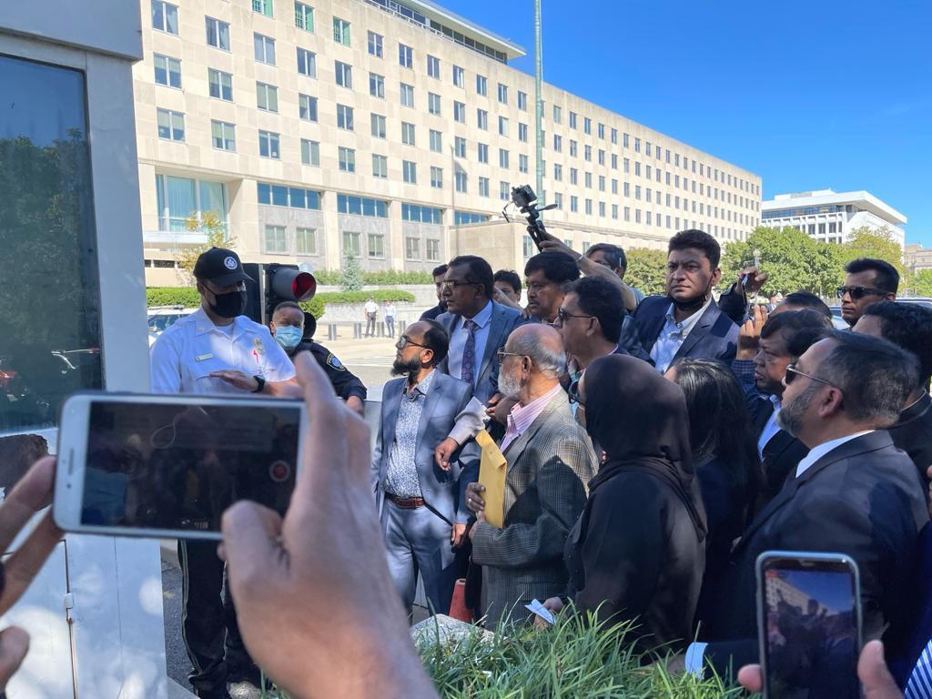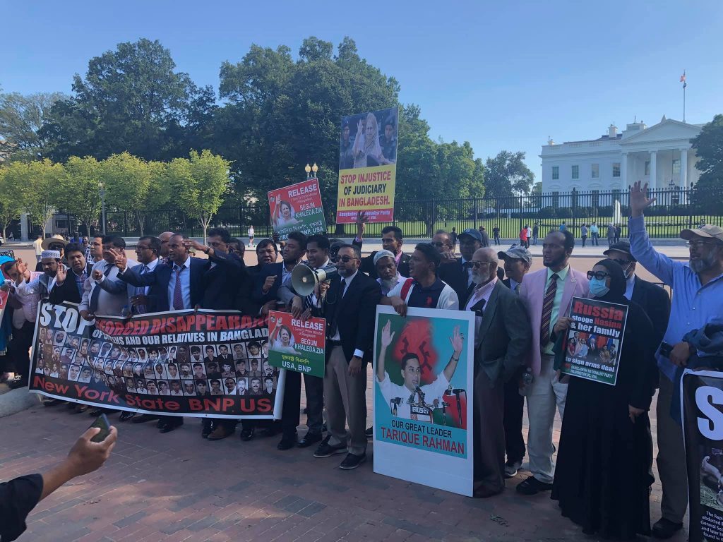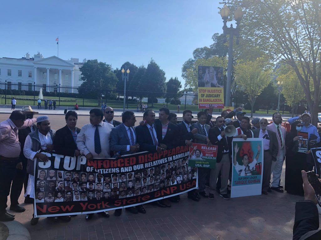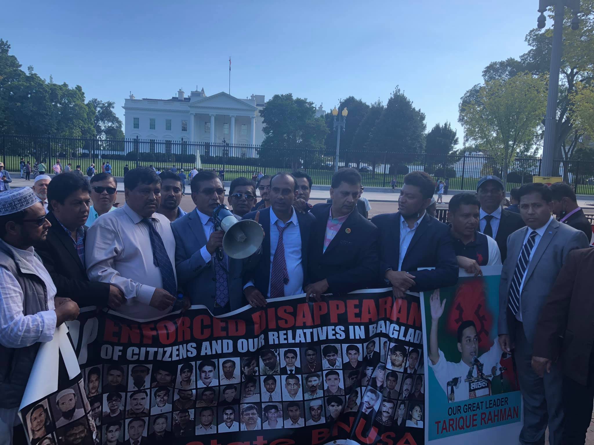 স্টেট ডিপার্টমেন্টের সামনে বিক্ষোভ শেষে স্মারকলিপি প্রদান করে পরে বিএনপির নেতা-কর্মীরা যোগ দেন হোয়াইট হাউসের সামনে আরেকটি বিক্ষোভে।