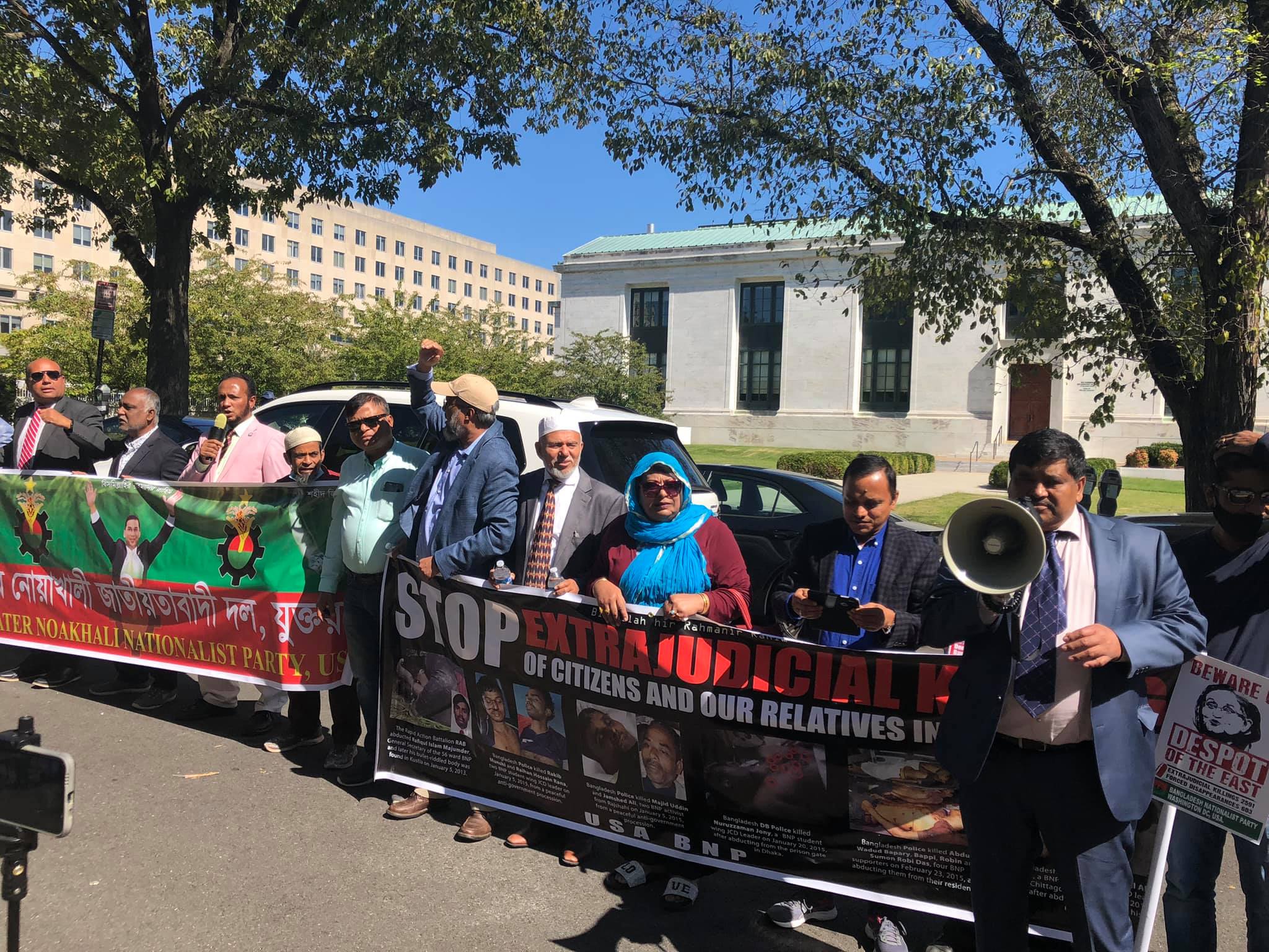 বিক্ষোভে অংশ নেয়া নেতা-কর্মীরা জানান, তাদের পূর্ব নির্ধারিত কর্মসূচীর অংশ হিসেবে সোমবার দুপুরে বিভিন্ন স্টেট থেকে আগত বিএনপি নেতা-কর্মীরা কন্সটিটিউশন এভিনিউর সামনে বিক্ষোভে অংশ নেন। এসময় তারা সরকারের পদত্যাগের দাবি সম্বলিত ব্যানার, পোস্টার, প্ল্যা কার্ড হাতে নিয়ে বাংলাদেশের সরকার বিরোধী নানা শ্লোগানে মুখর করে তুলে হ্যারি এস ট্রু ম্যান বিল্ডিং খ্যাত স্টেট ডিপার্টমেন্ট ভবন প্রাঙ্গণ।