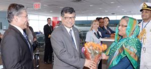 বাংলাদেশের প্রধানমন্ত্রী শেখ হাসিনা জাতিসংঘের অধিবেশনে যোগ দিতে নিউইয়র্কে