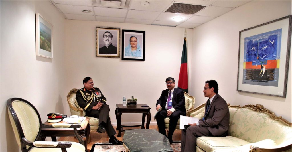 এর আগে সেনাবাহিনী প্রধান জাতিসংঘে বাংলাদেশ স্থায়ী মিশনে পৌঁছালে জাতিসংঘে নিযুক্ত বাংলাদেশের স্থায়ী প্রতিনিধি ও রাষ্ট্রদূত মাসুদ বিন মোমেন তাঁকে স্বাগত জানান এবং শান্তিরক্ষা কার্যক্রমের বিভিন্ন দিকসহ জাতিসংঘে বাংলাদেশের অংশগ্রহণের নানা দিক এবং ভবিষ্য কর্ম-পরিকল্পনা সম্পর্কে অবহিত করেন।