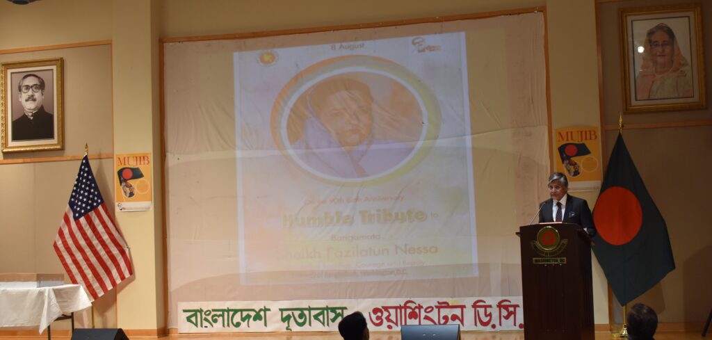 ইউএসএনিউজঅনলাইন.কম ডেস্ক. ওয়াশিংটন ডি.সি.: ওয়াশিংটনস্থ বাংলাদেশ দূতাবাসে ৮ আগস্ট শনিবার বঙ্গমাতা শেখ ফজিলাতুন নেছা মুজিবের ৯০তম জন্মবার্ষিকী যথাযোগ্য মর্যাদা ও ভাবগাম্ভীর পরিবেশে উদ্যাপিত হয়েছে।