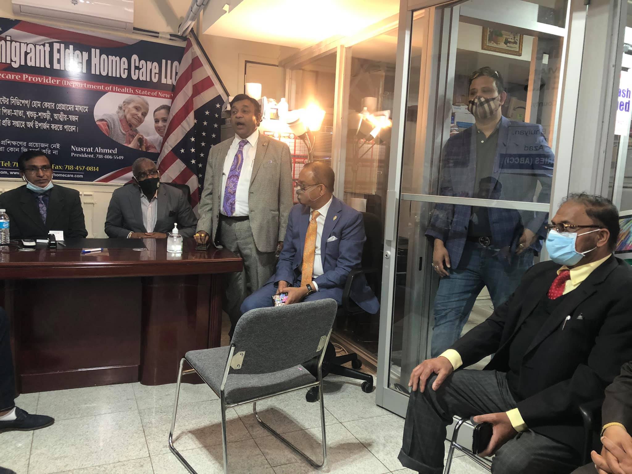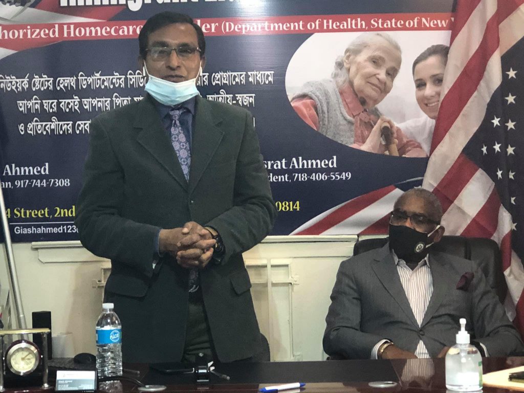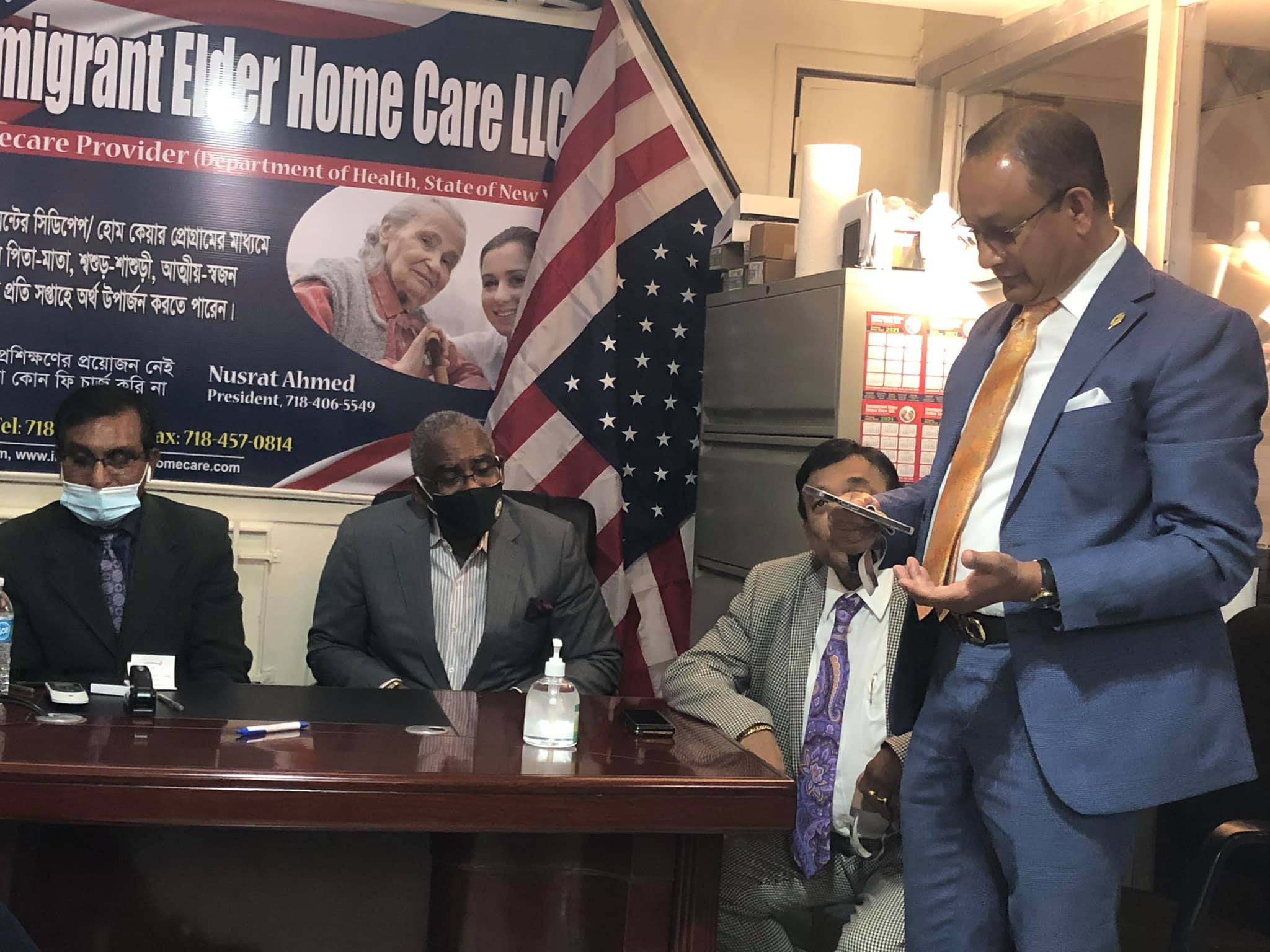 আমেরিকা বাংলাদেশ চেম্বার অব কর্মাস অ্যান্ড ইন্ডাস্ট্রিজ এর চেয়ার ও ইমিগ্রেশন এল্ডার হোম কেয়ারের সিইও গিয়াস আহমেদের সভাপতিত্বে এবং এবিসিসিআইর কো চেয়ার গোল্ডেন এইজ হোম কেয়ারের সিইও শাহ নেওয়াজের সঞ্চালনায় এ অনুষ্ঠানে আরও বক্তব্য রাখেন বারী হোম কেয়ারের সিইও আসেফ বারী, ফাউমা ইনিসিয়েটিভ এর সিইও কমিউনিটি বোর্ড মেম্বার ফাহাদ সোলায়মান, বিএনপি নেতা সোলায়মান ভূইয়া, মোস্তফা কামাল পাশা বাবুল, শাহরিয়ার রহমান, রিসফা রহমান, মোঃ কাশেম, পরান চৌধুরী, মোহাম্মাদ এ আজাদ প্রমুখ।