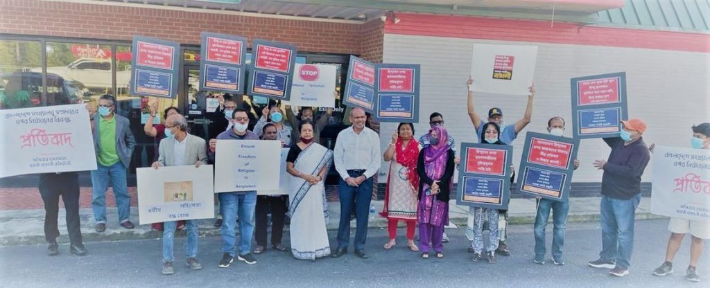 বাংলাদেশে পূজা মন্ডপ ও হিন্দু সম্প্রদায়ের উপর হামলার প্রতিবাদে জর্জিয়ার আটলান্টা শহরে প্রতিবাদ সমাবেশ