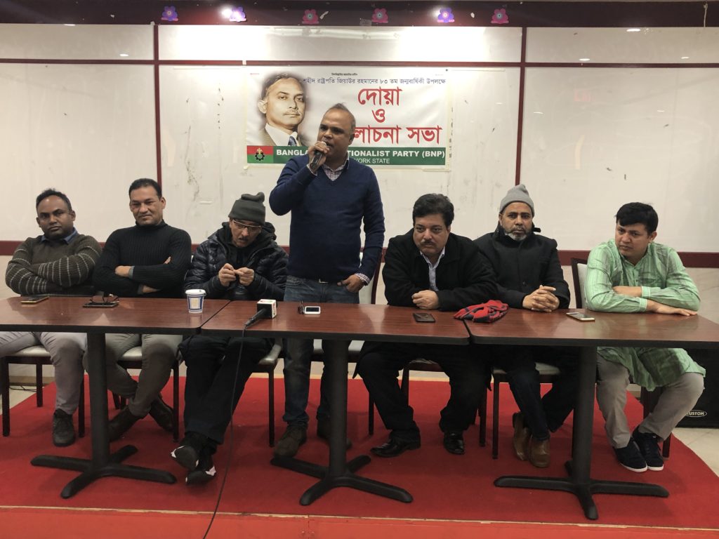 বিএনপির প্রতিষ্ঠাতা শহীদ প্রেসিডেন্ট জিয়াউর রহমানের ৮৩তম জন্মবার্ষিকী উপলক্ষে গত ২০ই জানুয়ারী রোববার নিউইয়র্কে ব্রঙ্কসের আল আকসা রেষ্টুরেন্ট পার্টি হলে নিউইয়র্ক স্টেট বিএনপি আয়োজিত আলোচনা সভা ও দোয়া মাহফিলে বক্তারা এসব কথা বলেন।