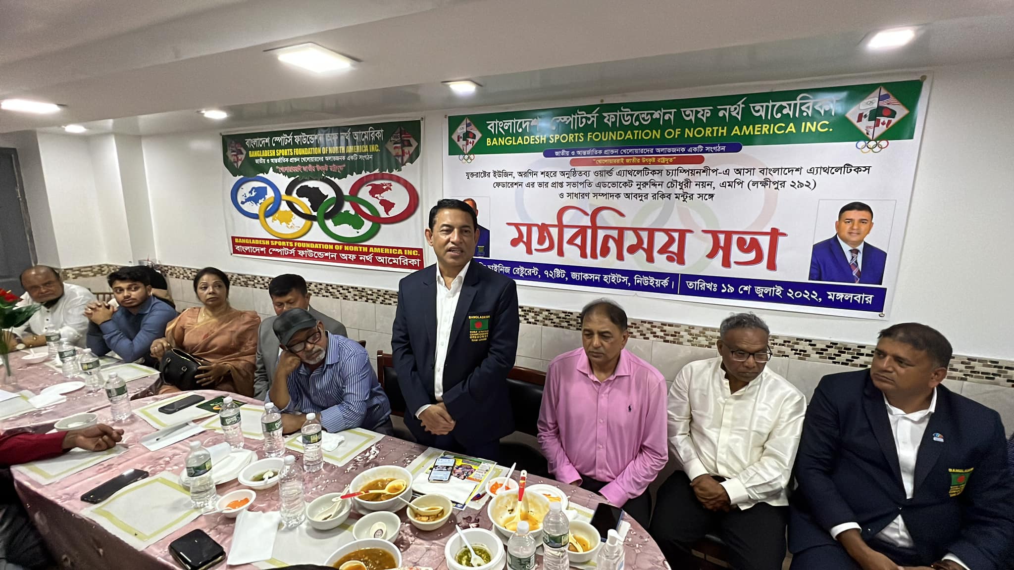 ইউএসএনিউজঅনলাইন.কম : যুক্তরাষ্ট্র সফররত বাংলাদেশ অ্যাথলেটিক্সফেডারেশনের সভাপতি এডভোকেট নুর উদ্দীন চৌধুরী নয়ন এমপি এবং সাধারণ সম্পাদক অ্যাডভোকেট আবদুর রকিব মন্টুর সাথে নিউইয়র্কে যুক্তরাষ্ট্র প্রবাসীদের মতবিনিময় সভা অনুষ্ঠিত হয়েছে। নিউইয়র্কের জ্যাকসন হাইটসে ইটজি পার্টি সেন্টারে গত ১৯ জুলাই সাবেক জাতীয় ও আন্তর্জাতিক খেলোয়ারদের সংগঠন বাংলাদেশ স্পোর্টস ফাউন্ডেশন অব নর্থ আমেরিকা এ মত বিনিময় সভার আয়োজন করে।