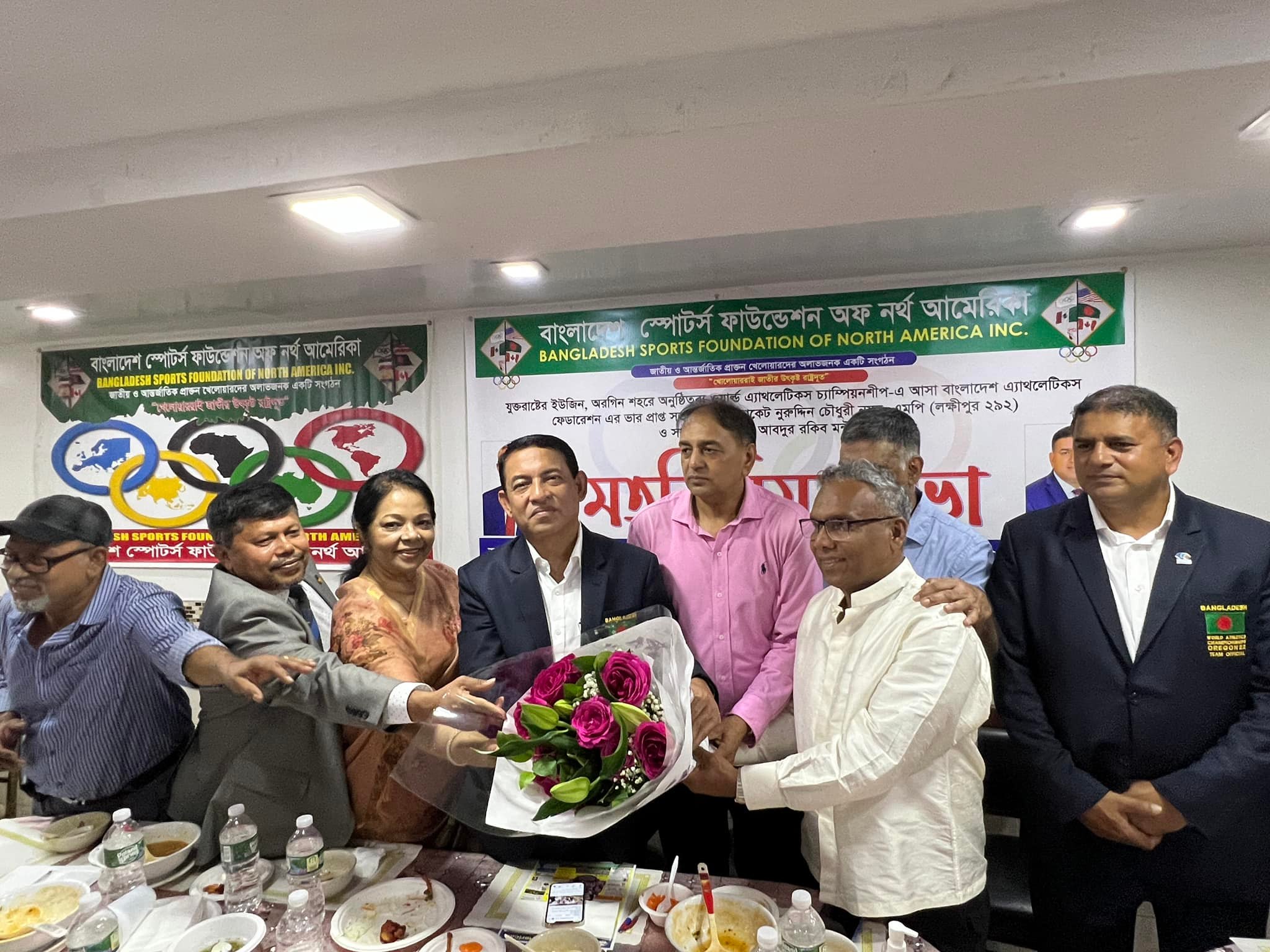 অনুষ্ঠানে বাংলাদেশ স্পোর্টস ফাউন্ডেশন অব নর্থ আমেরিকা সহ বিভিন্ন ব্যক্তি ও সংগঠনের পক্ষ থেকে বাংলাদেশ অ্যাথলেটিক্স ফেডারেশনের সভাপতি এডভোকেট নুর উদ্দীন চৌধুরী নয়ন এবং সাধারণ সম্পাদক অ্যাডভোকেট আবদুর রকিব মন্টুকে ফুলেল শুভেচ্ছাসহ ক্রেস্ট প্রদান করা হয়।