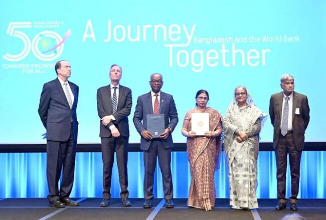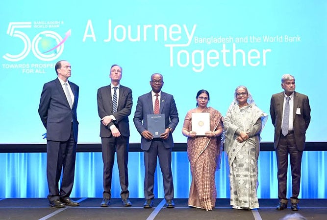 এ সময়ে প্রধানমন্ত্রী শেখ হাসিনা এবং বিশ^ব্যাংকের প্রেসিডেন্ট ডেভিড মালপাস উপস্থিত ছিলেন।