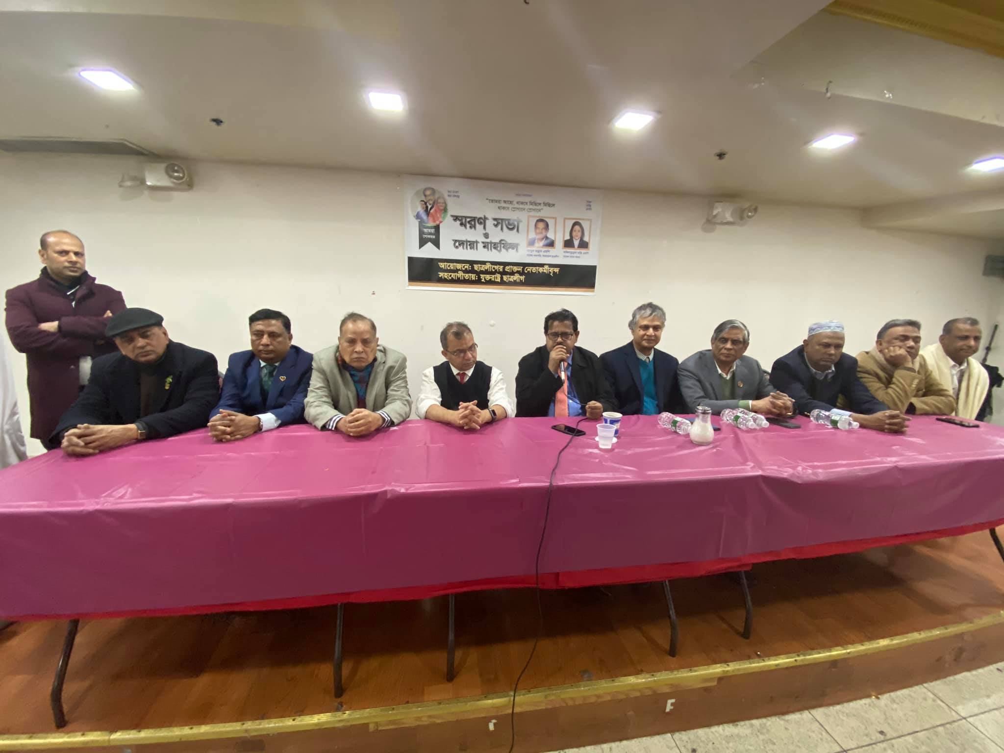 বাংলাদেশ ছাত্রলীগের সাবেক সভাপতি আব্দুল মান্নান ও সাবেক এমপি ফজিলাতুন নেসা বাপ্পি স্মরণে নিউইয়র্কে দোয়া মাহফিল ও শোক সভা (ভিডিও)