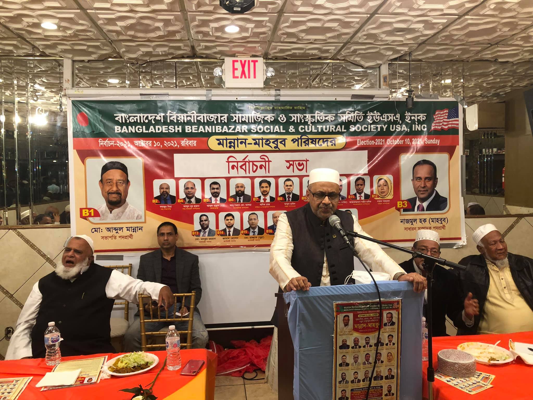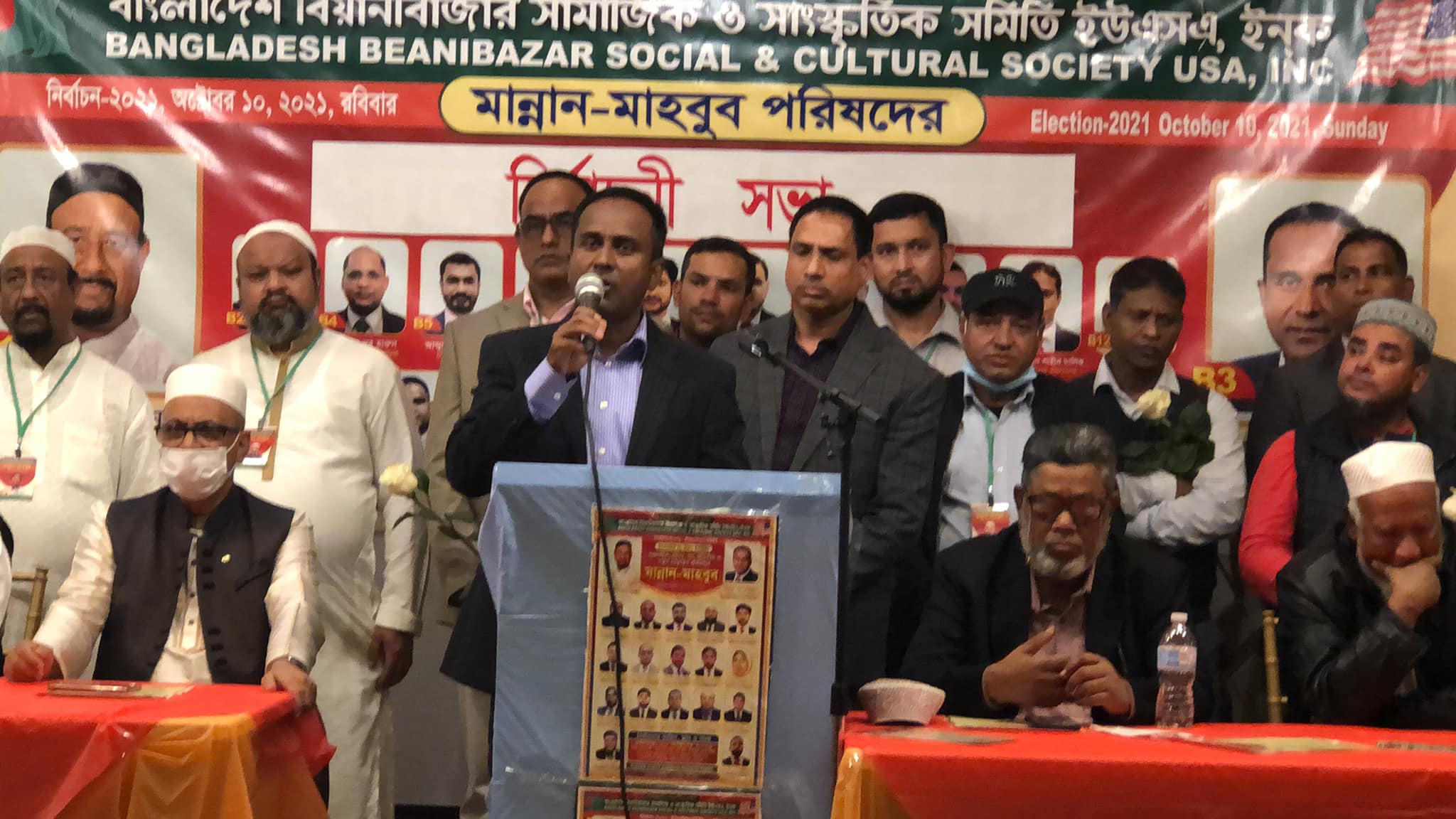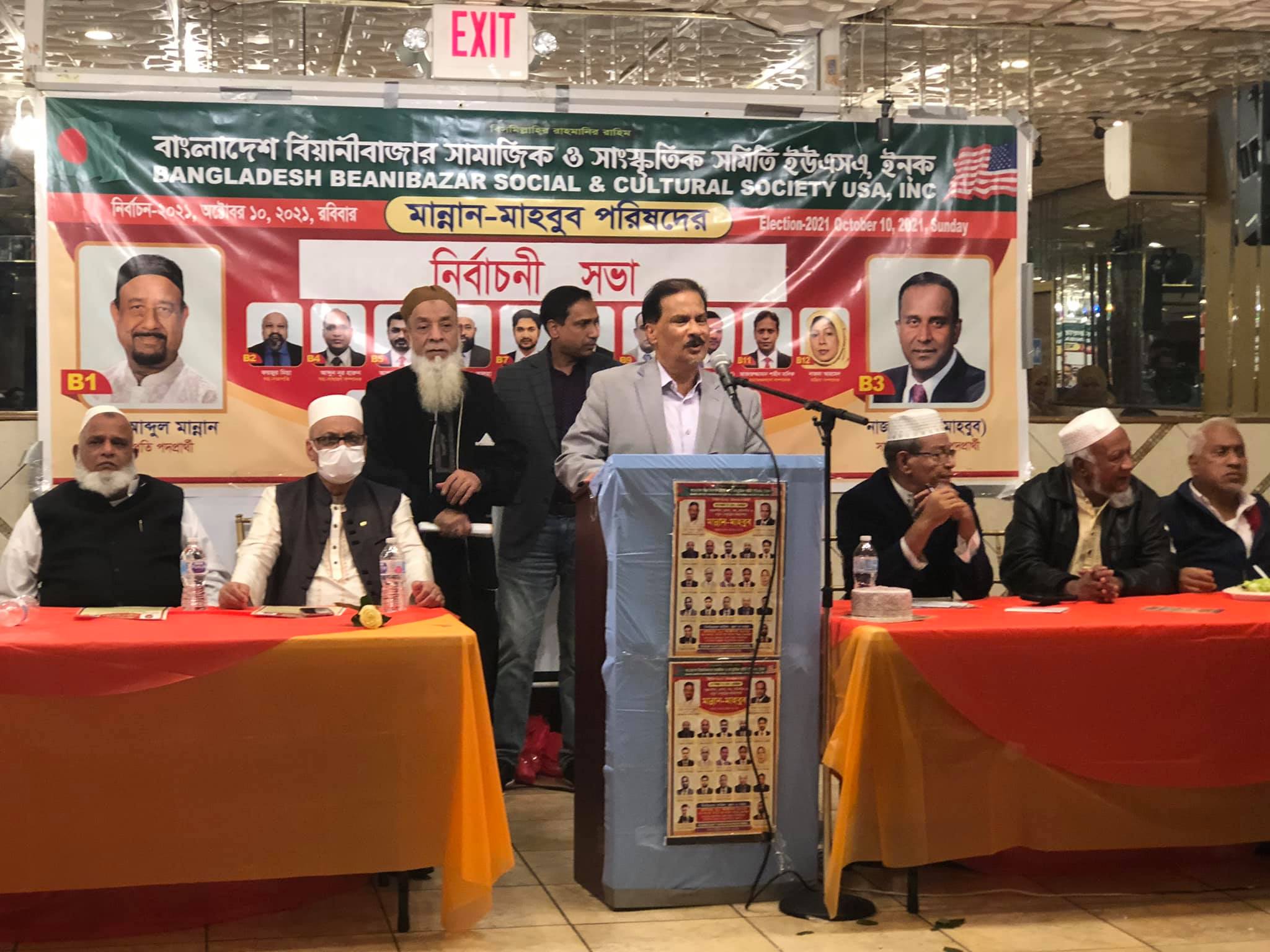 বাংলাদেশ বিয়ানীবাজার সামাজিক ও সাংস্কৃতিক সমিতি ইউএসএ ও জালালাবাদ এসোসিয়েশন অব আমেরিকা ইনকের সাবেক সভাপতি বদরুল এইচ খানের সভাপতিত্বে এবং বাংলাদেশ স্পোর্টস কাউন্সিল অব আমেরিকার সাবেক সাধারণ সম্পাদক আবদুল বাসিত খান বুলবুল ও ‘মান্নান-মাহবুব’ প্যানেল নির্বাচন পরিচালনা কমিটির সদস্য সচিব জহির উদ্দিন জুয়েলের যৌথ পরিচালনায় ওই সমাবেশে বক্তব্য রাখেন নির্বাচন পরিচালনা কমিটির সদস্য হাজী শামসুল ইসলাম, বীর মুক্তিযোদ্ধা মোজাহিদুল ইসলাম, আজমল হোসেন কুনু ও ময়নুল হোসেন, প্রবীণ প্রবাসী আবদুল খালিক লানু, শামসুদ্দিন সোনাই, আবদুল আজিজ, আব্দুল হক, আবদুল হাই লন, আবদুল হাসিব মাস্টার, হারুন মিয়া, গৌছ উদ্দিন খান, বীর মুক্তিযোদ্ধা আজিজুর রহমান সাবু, বীর মুক্তিযোদ্ধা ডা. আব্দুর রাজ্জাক, বীর মুক্তিযোদ্ধা তজম্মুল আলী, বীর মুক্তিযোদ্ধা মৌলা মিয়া, বীর মুক্তিযোদ্ধা মোহাম্মদ মিয়া দুদু, বুরহান উদ্দিন কফিল, মস্তফা উদ্দিন, মাসুক আহমেদ, আবুল হোসেন, মিসবা আবেদীন, সাইকুল ইসলাম, সালেহ আহমেদ মুনিয়া, শামীম আহমেদ, নূরে আলম অলি, খসরুল হক, আবদুল মতিন, এনাম আহমেদ, আকতার মিয়া মুক্তা, মো. আহসান রাসুল নাসির, সভাপতি প্রার্থী মোহাম্মদ আব্দুল মান্নান, সাধারণ সম্পাদক প্রার্থী নাজমুল হক (মাহবুব), সহ সাধারণ সম্পাদক প্রার্থী আবদুন নূর হারুন, কোষাধ্যক্ষ প্রার্থী আব্দুল হান্নান দুখু, সাংগঠনিক সম্পাদক প্রার্থী আবু তৈয়ব মোহাম্মদ তালহা প্রমুখ।
