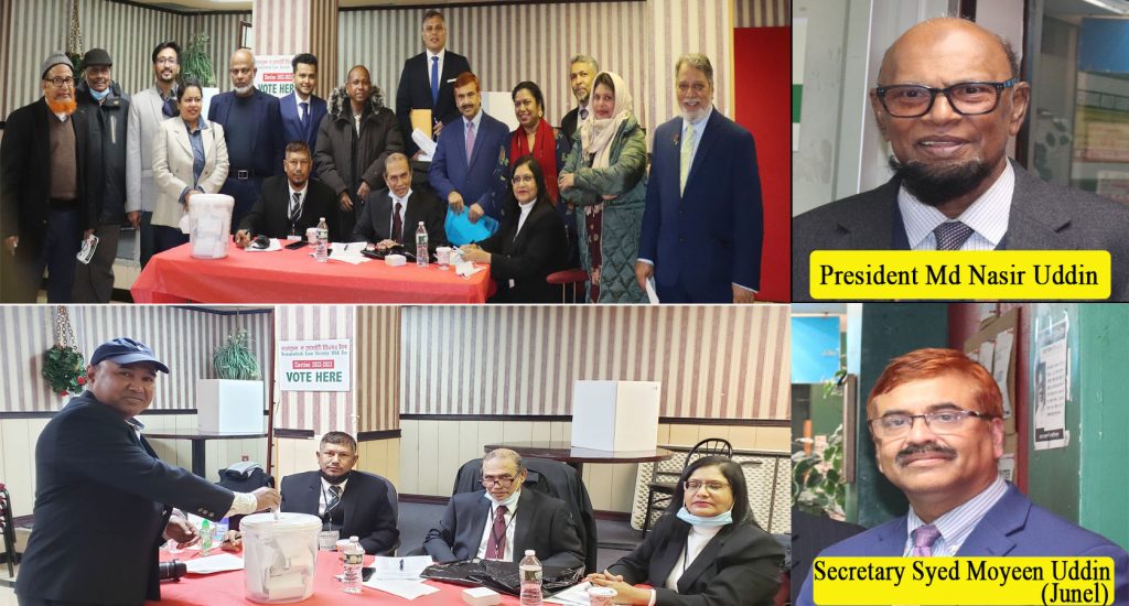 নির্বাচন কমিশন সূত্র জানায়, নিউইয়র্ক সিটির জ্যাকসন হাইটসে বাংলাদেশ প্লাজায় ২০২২-২০২৩ সালের এ নির্বাচনে ভোট গ্রহণ চলে দুপুর ১২টা থেকে সন্ধ্যা ৭টা পর্যন্ত। নির্বাচন পরিচালনা করেন প্রধান নির্বাচন কমিশনার আবুল কে আজাদ তালুকদার, নির্বাচন কমিশনার এ্যাডভোকেট সুলতানা জামান এবং এ্যাডভোকেট মোঃ ইমাম উদ্দিন সেলিম। ভোটারদের স্বতস্ফুর্ত অংশগ্রহনে যথাসময়ে ভোট গ্রহন সম্পন্ন হয়।