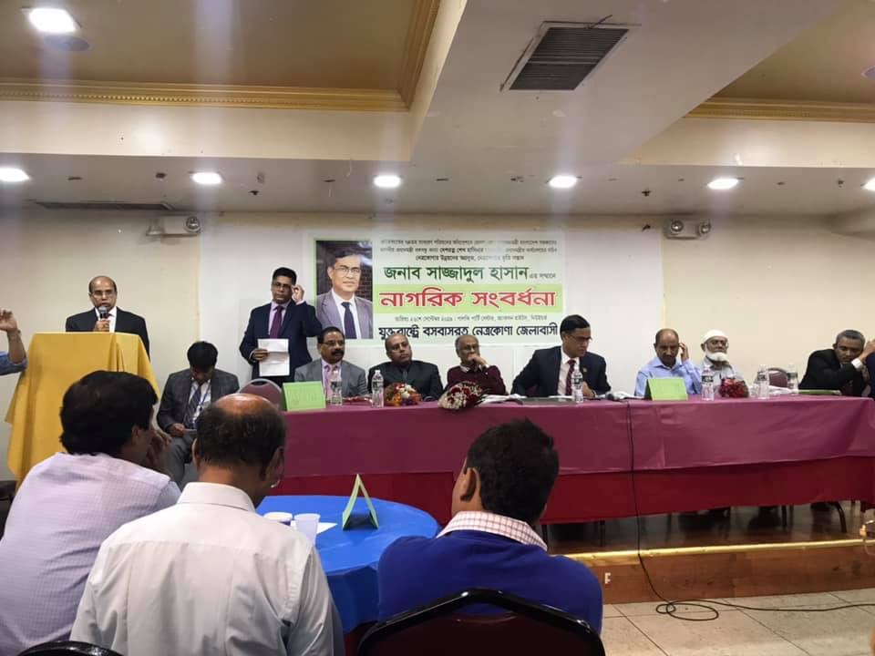 ইউএসএনিউজঅনলাইন.কম ডেস্ক, নিউইয়র্ক : জাতিসংঘে ৭৪তম অধিবেশনে যোগদানরত গণপ্রজাতন্ত্রী বাংলাদেশ সরকারের প্রধানমন্ত্রীর কার্যালয়ের সচিব, নেত্রকোণা’র উন্নয়নের নতুন অগ্রদূত সাজ্জাদুল হাসানকে নিউইয়র্কে নাগরিক সংবর্ধনা দিয়েছে যুক্তরাষ্ট্রে বসবাসকারী নেত্রকোণা জেলাবাসী। সংবর্ধনা উপলক্ষে মত-পথ ভুলে সকল নেত্রকোণাবাসী মিলিত হয়েছিল জ্যাকসন হাইটসের পালকি পার্টি সেন্টারে।