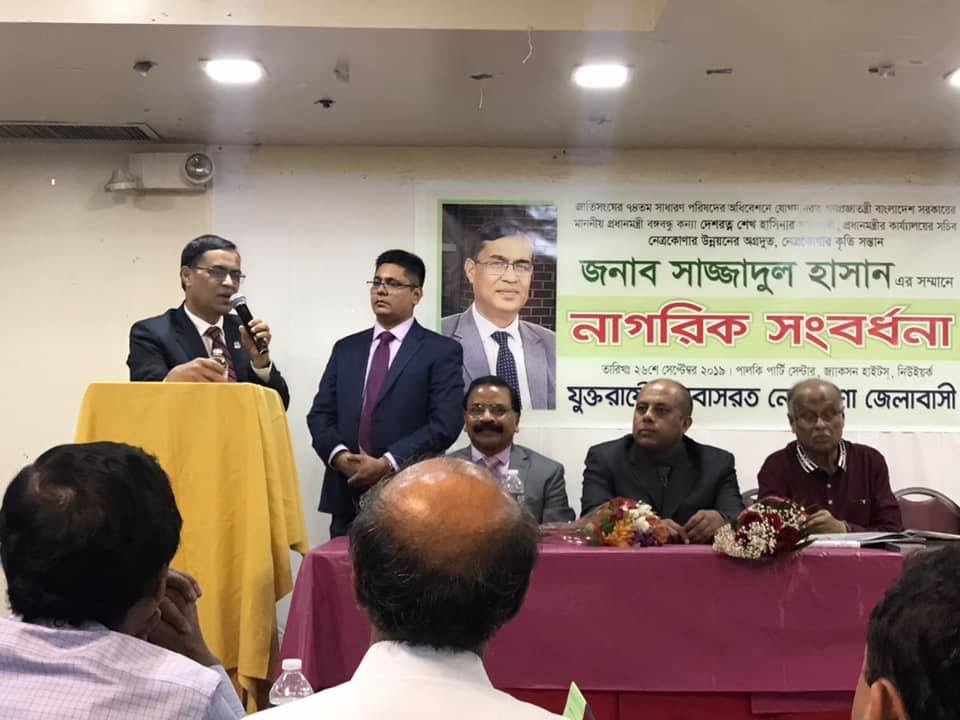 বাংলাদেশ সরকারের প্রধানমন্ত্রীর কার্যালয়ের সচিব সাজ্জাদুল হাসানকে নিউইয়র্কে নাগরিক সংবর্ধনা