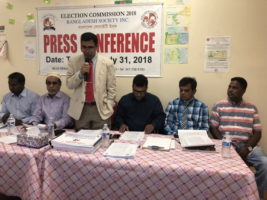 সংবাদ সম্মেলনে লিখিত বক্তব্যে প্রধান নির্বাচন কমিশনার এস এম জামাল ইউ আহমেদ বলেন, গঠনতন্ত্র মোতাবেক সোসাইটির বর্তমান কার্যকরী কমিটি নির্বাচন অনুষ্ঠানের জন্য ৭ সদস্য বিশিষ্ট নির্বাচন কমিশন গঠন করে। নির্বাচন কমিশন সোসাইটির গঠনতন্ত্রের সাথে সামঞ্জস্য রেখে নির্বাচনের তারিখ ও তফসীল নির্ধারণ করা হয়। সে অনুযায়ী বাংলাদেশ সোসাইটি ইনক-এর কার্যকরী কমিটি (২০১৯-২০২০) এর নির্বাচন আগামী ২১ অক্টোবর অনুষ্ঠিত হবে। এদিন সকাল ৯টা থেকে রাত ৯টা পর্যন্ত ভোট গ্রহণ চলবে।