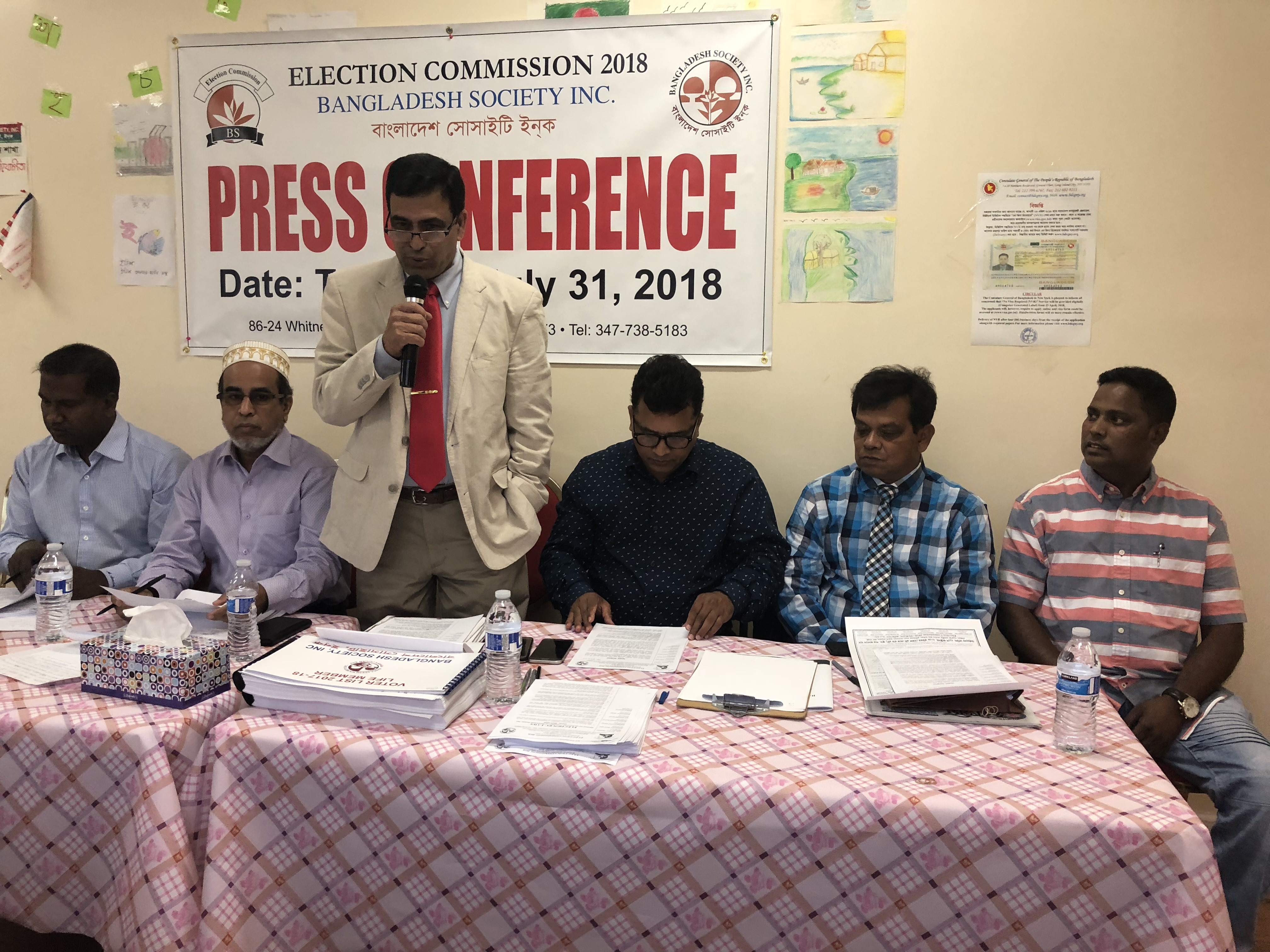 সংবাদ সম্মেলনে লিখিত বক্তব্যে নির্বাচনী তফসিল ঘোষণা করেন প্রধান নির্বাচন কমিশনার এস এম জামাল ইউ আহমেদ। এসময় ৭ সদস্যের নির্বাচন কমিশনের মধ্যে উপস্থিত ছিলেন এ হাকিম মিয়া, কাওসারুজ্জামান কয়েস, মোহাম্মদ আর সরকার ও খোকন মোশাররফ। কমিশনের অপর সদস্য মোহাম্মদ মহিউদ্দিন দেওয়ান সংবাদ সম্মেলনে অনুপস্থিত ছিলেন। সংবাদ সম্মেলন পরিচালনা করেন কমিশনের অন্যতম সদস্য মোহাম্মদ আনোয়ার হোসেন। এসময় অন্যদের মধ্যে উপস্থিত ছিলেন সোসাইটির সভাপতি কামাল আহমেদ, সিনিয়র সহ সভাপতি আব্দুল রহীম হাওলাদার, সহ সভাপতি আব্দুল খালেক খায়ের, সাধারণ সম্পাদক রুহুল আমীন সিদ্দিকী, সহ সাধারণ সম্পাদক সৈয়দ এম কে জামান, কোষাধ্যক্ষ মোহাম্মদ আলী, সাংস্কৃতিক সম্পাদক মনিকা রায়, সাহিত্য সম্পাদক নাসির উদ্দিন আহমেদ, ক্রীড়া ও আপ্যায়ন সম্পাদক মোহাম্মদ নওশেদ হোসেন, কার্যকরী সদস্য আজাদ বাকির, আবুল কাশেম চৌধুরী ও সারোয়ার খান বাবু প্রমুখ।
