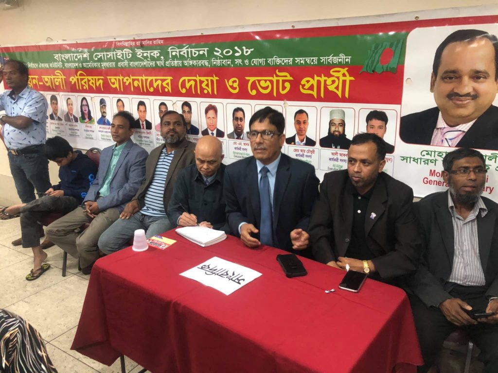 উল্লেখ্য, গত বছরের ২১ অক্টোবর বাংলাদেশ সোসাইটির কার্যকরী পরিষদের নির্বাচন অনুষ্ঠান হওয়ার কথা ছিলো। নির্বাচনে ‘নয়ন-আলী’ ও ‘রব-রুহুল’ প্যানেল ছাড়াও সভাপতি ও সাধারণ সম্পাদক পদে আরো দু’জন প্রার্থী রয়েছেন।