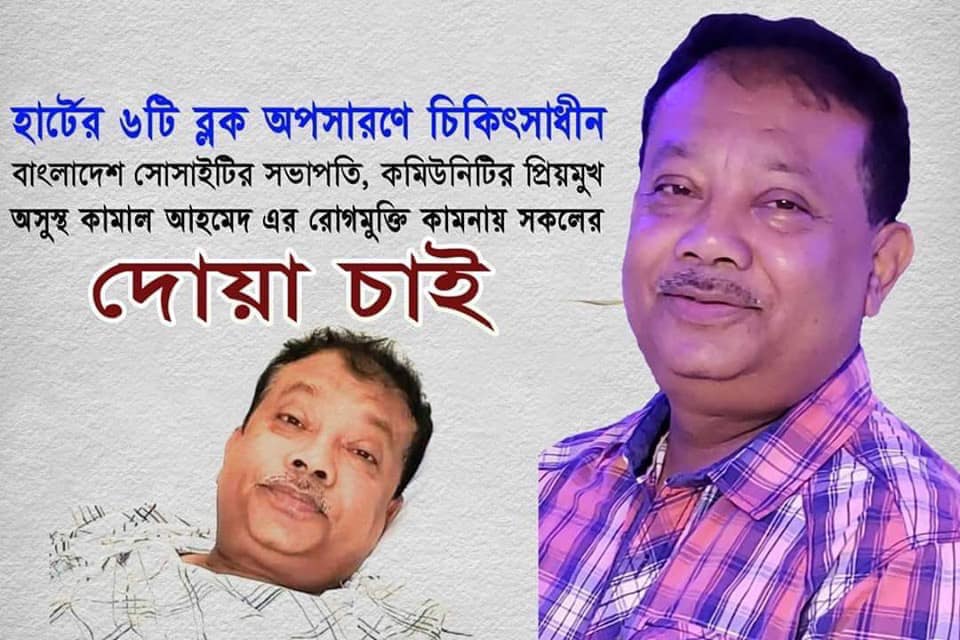 বাংলাদেশ সোসাইটির সভাপতি কামাল আহমেদ অসুস্থ, হার্ট সার্জারি সম্পন্ন : রোগ মুক্তির জন্য দোয়া কামনা বাংলা ক্লাব ইউএসএ’র