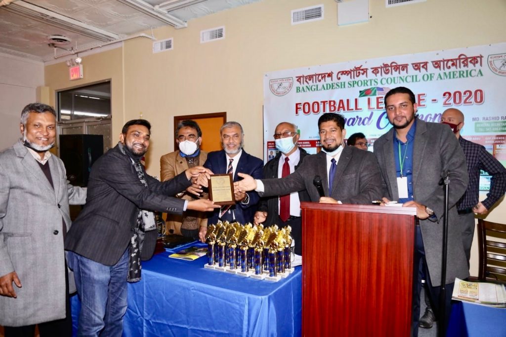 এদিকে ওজনপার্কের দেশী সেন্টার মিলনায়তনে রোববার সন্ধ্যায় আয়োজিত ফুটবল লীগের পুরষ্কার বিতরণী অনুষ্ঠানে সভাপতিত্ব করেন বাংলাদেশ স্পোর্টস কাউন্সিল অব আমেরিকা সভাপতি মিসবা আবদীন এবং অনুষ্ঠান পরিচালনা করেন সংগঠনের সাধারণ সম্পাদক রশীদ রানা। অনুষ্ঠানে স্পোর্টস কাউন্সিলের কর্মকর্তাদের মধ্যে উপদেষ্টা মনজুর আহমেদ চৌধুরী, হাজী এনাম, ছদরুন নূর, আতাউর রহমান সেলিম, কমিউনিটি অ্যাক্টিভিষ্ট কাজী সাখাওয়াত হোসেন আজম, ফিরোজ আহমেদ, জুলফিকার চৌধুরী, সাবুল উদ্দিন, জ্যামাইকা বাংলাদেশ ফ্রেন্ডস সোসাইটির সভাপতি মোহাম্মদ ফখরুল ইসলাম দেলোয়ার প্রমুখ শুভেচ্ছা বক্তব্য রাখেন।