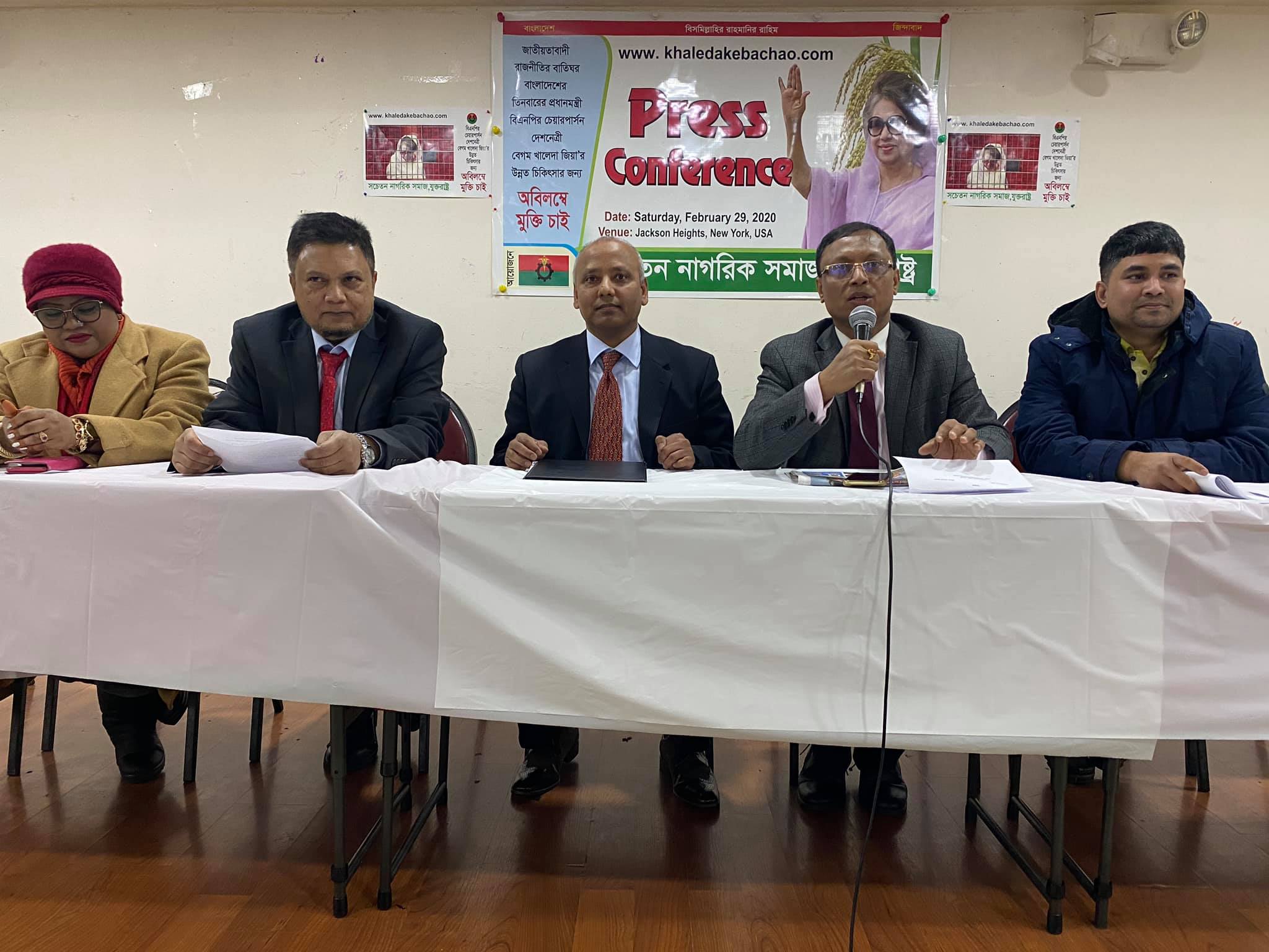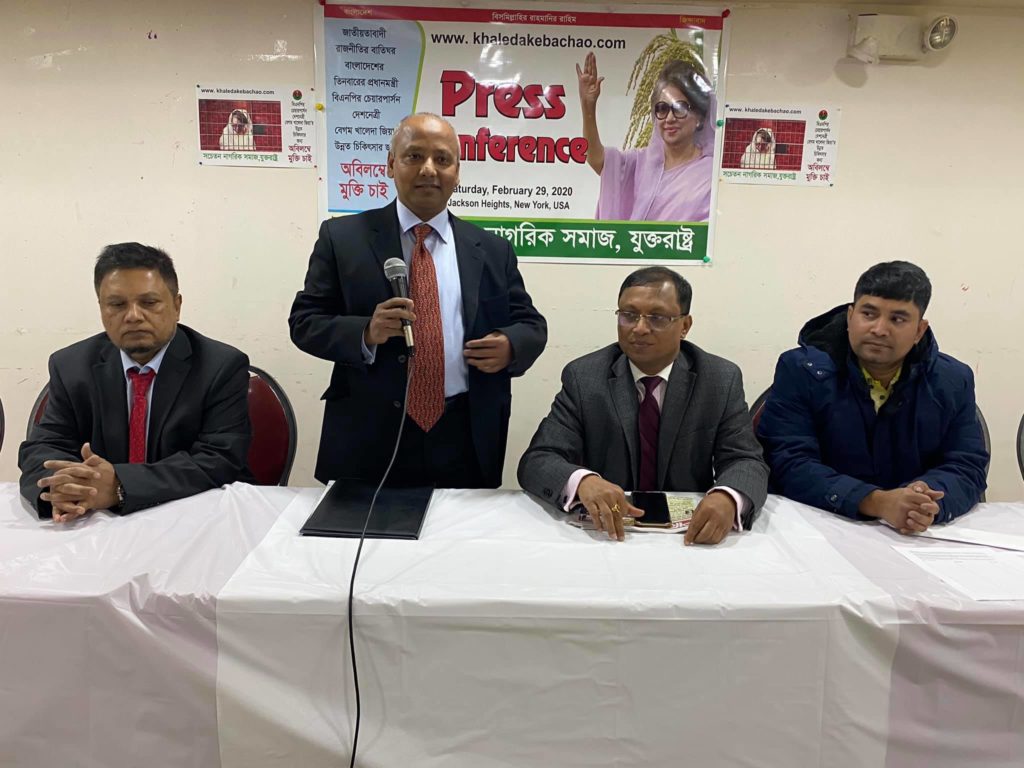 সংবাদ সম্মেলনে লিখিত বক্তব্যে বলা হয়, বাংলাদেশের গণমানুষের নেত্রী বেগম খালেদা জিয়াকে অহেতুক মামলায় দীর্ঘদিন কারাগারে রেখেছে শেখ হাসিনার সরকার। বর্তমানে তাঁর বয়স ৭৪ বছর। বাংলাদেশের গণমাধ্যম রিপোর্ট অনুসারে তিনি বাত এবং অনিয়ন্ত্রিত ডায়াবেটিসসহ অনেকগুলো রোগে ভুগছেন এবং প্রতিনিয়ত তাঁর স্বাস্থ্য অবনতির দিকে যাচ্ছে। এমতাবস্থায় তাঁর মুক্তির খুবই প্রয়োজন। কিন্তু শেখ হাসিনার সরকার অহেতুক খালেদা জিয়ার মামলাগুলোকে সময়ক্ষেপন করে তাকে মুক্তি না দিয়ে বিভিন্ন অজুহাতে মামলা তারিখ পিছিয়ে দীর্ঘদিন কারাগারে রাখছে।
