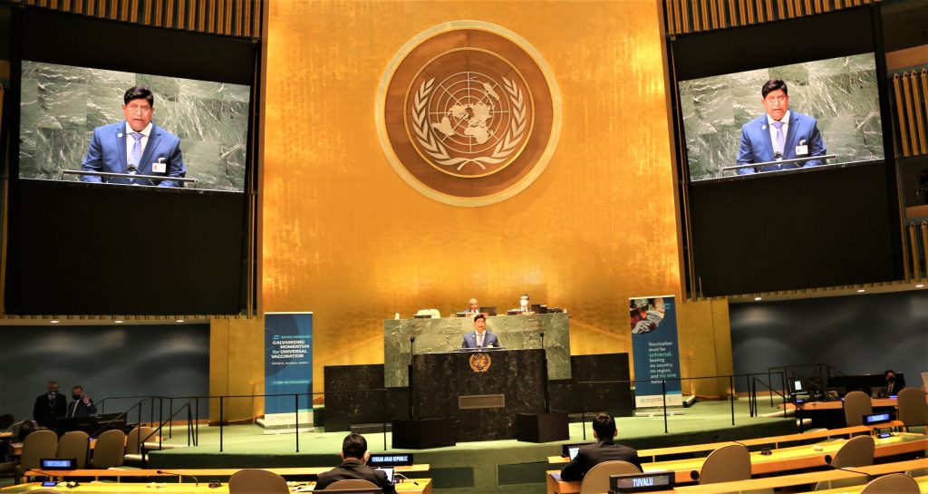 কোভিড ভ্যাকসিনকে “সার্বজনীন বিশ্ব সম্পদ” হিসাবে বিবেচনা করার জন্য প্রধানমন্ত্রী শেখ হাসিনার আহ্বানের কথা উল্লেখ করে পররাষ্ট্রমন্ত্রী বলেন, উন্নত দেশ এবং উৎপাদনকারীদের অবশ্যই সমতার ভিত্তিতে কোভ্যাক্স ফ্যাসিলিটির মাধ্যমে কোভিড-১৯ এর টিকার বৈশ্বিক সরবরাহ নিশ্চিত করতে হবে। তিনি বলেন, বিশ্বব্যাপী টিকার চাহিদা মেটাতে এর উৎপাদন আরও বাড়াতে হবে এবং বিকেন্দ্রীকরণ করতে হবে। এছাড়া বিশ্ব সম্প্রদায়কে টিকা বিষয়ক ভুল তথ্য এবং টিকা জাতীয়করণের বিরুদ্ধে লড়াইয়ে অবশ্যই একতাবদ্ধ হতে হবে।