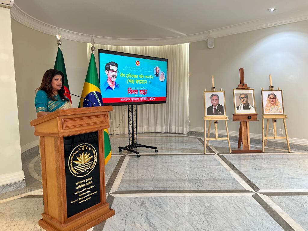 বীর মুক্তিযোদ্ধা শহিদ ক্যাপ্টেন শেখ কামালের প্রতিকৃতিতে পুষ্পস্তবক অর্পণের মাধ্যমে দূতাবাস কর্তৃক আয়োজিত অনুষ্ঠানের সূচনা করেন ব্রাজিলে নিযুক্ত বাংলাদেশের রাষ্ট্রদূত সাদিয়া ফয়জুননেসা। ১৫ আগস্ট কালরাতে ইতিহাসের এক নৃশংস হত্যাকাণ্ডে নিহত স্বাধীন বাংলাদেশের স্থপতি জাতির পিতা শেখ মুজিবুর রহমান ও তাঁর শহিদ পরিবারের সকলের প্রতি শ্রদ্ধা জানিয়ে এক মিনিট নীরবতা পালন করা হয়। বহুমাত্রিক ক্রীড়া সংগঠক ও ক্রীড়াবিদ, আবাহনী ক্রীড়া চক্রের প্রতিষ্ঠাতা সভাপতি শহিদ ক্যাপ্টেন শেখ কামালের জন্মবার্ষিকী উপলক্ষ্যে রাষ্ট্রপতি মোঃ সাহাবুদ্দিন ও প্রধানমন্ত্রী শেখ হাসিনা কর্তৃক প্রদত্ত বাণী পাঠ করা হয় এবং শহিদ ক্যাপ্টেন শেখ কামালের কর্মময় ও বর্ণিল জীবনের উপর একটি প্রামাণ্যচিত্র প্রদর্শিত হয়।