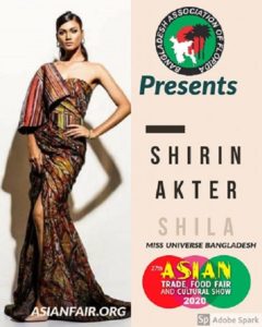 সংগঠনটির পক্ষ থেকে রেজা ইসলাম ফ্লোরিডা বাংলাকে বলেন, “প্রতি বছর এশিয়ান ফেয়ার এ আমরা চেষ্টা করি বাংলাদেশের শিল্প এবং সাহিত্য অঙ্গনের উল্লেখযোগ্য ব্যক্তিবর্গকে সম্মাননা জানানোর। সেই ধারাবাহিকতায় আমরা মনে করেছি গত বছর শিরিন শীলা আন্তর্জাতিক একটি প্লাটফর্মে বাংলাদেশকে চমৎকারভাবে প্রতিনিধিত্ব করেছিলেন। শেষ পর্যন্ত তিনি মিস ইউনিভার্স চ্যাম্পিয়ন হতে না পারলেও তাঁর পারফরমেন্স বিচারকমণ্ডলী এবং দর্শকদের হৃদয়কে স্পর্শ করতে পেরেছিলো। আমরা আমাদের এসোসিয়েশনের পক্ষ থেকে তাই এশিয়ান ফেয়ার এন্ড কালচারাল শোতে শিরিন শীলাকে গৌরবজনক এশিয়ান ফেয়ার অ্যাওয়ার্ড ২০২০ প্রদান করার সিদ্ধান্ত গ্রহণ করেছি।” এশিয়ান ফেয়ার এর ২৭ তম আসর যুক্তরাষ্ট্রের ফ্লোরিডায় অনুষ্ঠিত হবে আগামী ১৪ এবং ১৫ মার্চ। ফ্লোরিডা বাংলা