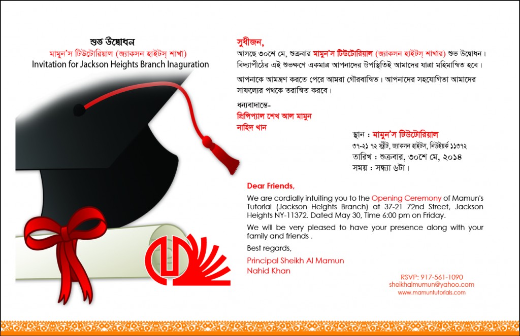 মামুন’স টিউটোরিয়ালের জ্যাকসন হাইটস শাখার উদ্বোধন ৩০ মে শুক্রবার