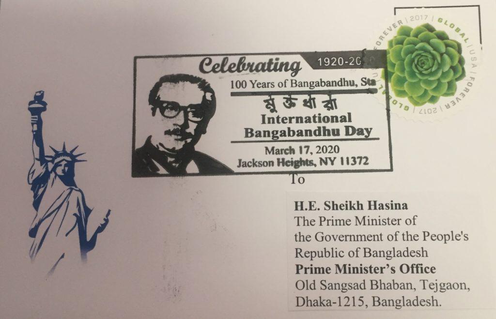 মার্কিন পোস্টাল বিভাগ’র বঙ্গবন্ধুর ছবি সম্বলিত সীল মোহর প্রকাশ নিউইয়র্কে
