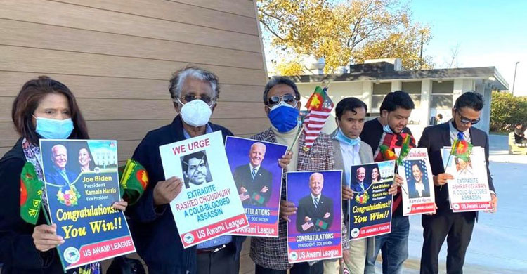 প্রেসিডেন্ট-নির্বাচিত জো বাইডেনের প্রথম ভাষণ অনুষ্ঠানে যুক্তরাষ্ট্র আওয়ামী লীগের সভাপতি ড. সিদ্দিকুর রহমানের নেতৃত্বে যুক্তরাষ্ট্র আওয়ামী লীগ, নিউইয়র্ক, কানেকটিকাট, নিউজার্সী ও পেনসিলভানিয়া স্টেট আওয়ামী লীগ নেতৃবৃন্দ যোগ দেন। নেতৃবৃন্দের মধ্যে ছিলেন যুক্তরাষ্ট্র আওয়ামী লীগের প্রচার সম্পাদক দুলাল মিয়া এনাম, প্রবাসী কল্যাণ সম্পাদক সোলায়মান আলী, কার্যকরী সদস্য শাহানারা রহমান, কানেকটিকাট আওয়ামী লীগের সাধারণ সম্পাদক হুমায়ুন চৌধুরী, যুবলীগ নেতা শাহ সেলিম প্রমুখ। এসময় তারা যুক্তরাষ্ট্র ও বাংলাদেশের জাতীয় পতাকা, বাইডেন-কমালা’র ছবি সম্বলিত ওয়েলকাম লেখা পোস্টার সহ ভিক্টোরী চিহ্ন ‘ভি’ প্রদর্শণ করে বিজয় উল্লাস প্রকাশ করেন।