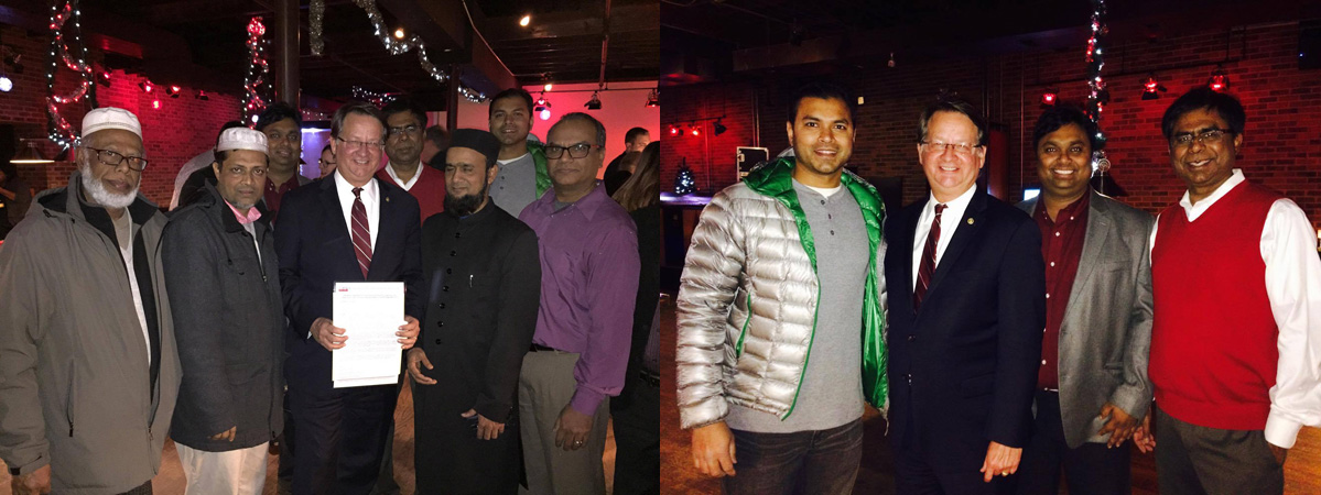 অনুষ্ঠানে বাংলাদেশি ইমামদের নেতা ও বিএডিসির ধর্ম বিষয়ক সম্পাদক ফখরুল ইসলাম মায়ানমারে মুসলমান রোহিঙ্গাদের প্রতি ঐ দেশের সরকারের চালানো নিপিড়ন ও গণহত্যা বন্ধে মার্কিন সরকারের হস্তক্ষেপ ও অন সান সুচির সরকারকে অত্যাচার বন্ধে স্মারকলিপি প্রদান করেন। সংগঠনের অন্যান্য নেতৃবৃন্দের মাঝে উপস্থিত ছিলেন মিশিগান বিএডিসি সভাপতি আরিফ মাহমুদ, সহ সভাপতি সোলাইমান বাহার,উপদেস্টা আনোয়ার হোসাইন, রাহাত খান, সাইফুল আজম সিদ্দিকী প্রমুখ । নেতৃবৃন্দের সাথে আলাপকালে সিনেটর বাংলাদেশ ভ্রমনের ইচ্ছা পোষণ করেন।