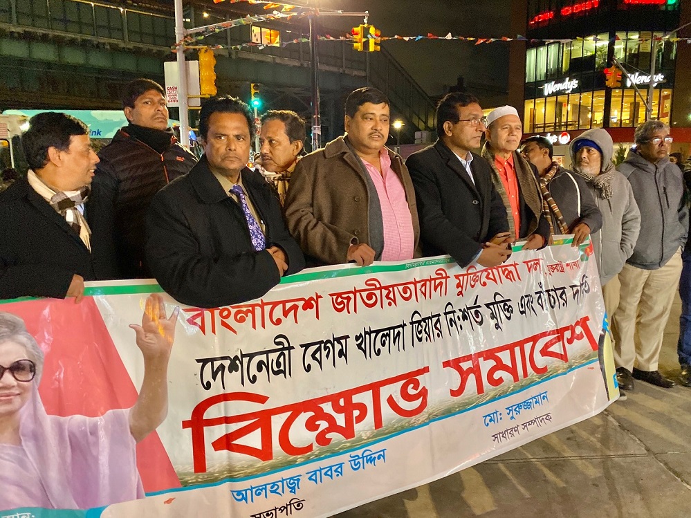 জ্যাকসন হাইটসে ডাইভার্সিটি প্লাজায় অনুষ্ঠিত বিক্ষোভ-সমাবেশে বিএনপি চেয়ারপার্সন বেগম খালেদা জিয়ারও মুক্তি দাবি করা হয়। সমাবেশে সভাপতিত্ব করেন যুক্তরাষ্ট্র মুক্তিযোদ্ধা দলের সভাপতি আলহাজ্ব বাবরউদ্দিন এবং পরিচালনা করেন সেক্রেটারি সুরুজ্জামান।
