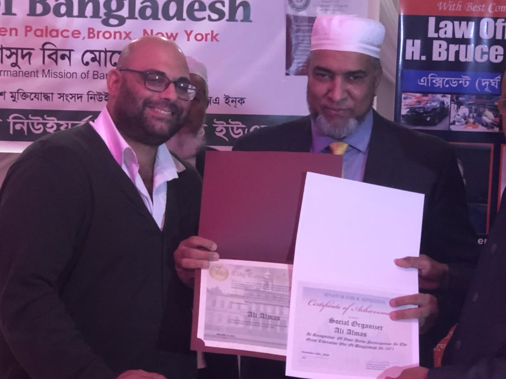 ইউএসএনিউজঅনলাইন.কম : বাংলাদেশ মুক্তিযোদ্ধা সংসদ, নিউইয়র্ক স্টেট কমান্ডের উদ্যোগে গত ১৬ ডিসেম্বর উৎসবমুখর পরিবেশে বাংলাদেশের মহান বিজয় দিবস উদযাপিত হয়েছে। ব্রঙ্কসের গোল্ডেন প্যালেসে এদিন সন্ধ্যা থেকে নানা আয়োজনে দিবসটি উদযাপন করা হয়। কর্মসূচির মধ্যে ছিল প্রবাসী মুক্তিযোদ্ধাদের স্মৃতিচারণ, আলোচনা সভা, সম্মাননা প্রদান সহ মনোজ্ঞ সাংস্কৃতিক পরিবেশনা। অনুষ্ঠানের টাইটেল স্পন্সর ছিল মার্কস হোম কেয়ার এবং মিডিয়া পার্টনার ছিল ইউএসএনিউজঅনলাইন.কম।