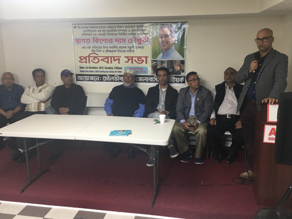 মৌলভীবাজার পৌরসভার কাউন্সিলর স্বাগত কিশোর দাস চৌধুরীসহ তার পরিবারের ওপর সন্ত্রাসী হামলার প্রতিবাদে নিউইয়র্কে বিশাল সমাবেশ: অবিলম্বে হামলাকারীদের গ্রেফতার ও দৃষ্টান্তমূলক বিচার দাবি, আন্দোলনের হুমকি
