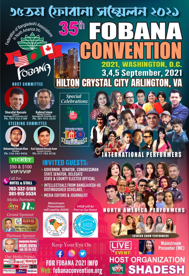 ইউএসএনিউজঅনলাইন.কম ডেস্ক, নিউইয়র্ক: উত্তর আমেরিকা প্রবাসীদের সাথে দেশের সেতুবন্ধনকে আরো জোরদার এবং আন্তর্জাতিকমানের সম্মেলন উপহার দেয়ার প্রত্যয় ঘোষণা করেছেন ৩৫তম ফোবানা সম্মেলনের একাংশের নেতৃবৃন্দ। মহামারী করোনার মধ্যেও সিডিসি’র স্বাস্থ্য বিধি মেনে সজিব ও সচল পৃথিবী ও সামাজিক অঙ্গীকারে এই সম্মেলন আয়োজন করা হচ্ছে। যুক্তরাষ্ট্রের লেবার ডে উকেন্ডে অর্থাৎ আগামী ৩, ৪ ও ৫ সেপ্টেম্বর ওয়াশিংটন ডিসি সংলগ্ন ভার্জিনিয়া রাজ্যের আলিংটনের হিলটন ক্রিস্টাল সিটিতে এই সম্মেলন অনুষ্ঠিত হবে। সম্মেলনে থাকবে বাংলাদেশের স্বাধীনতার ৫০ বছর, ঢাকা বিশ্ববিদালয়ের জন্মশত বার্ষিকীর অনুষ্ঠান ছাড়াও ব্যবসা-বাণিজ্য ও সাংবাদিকতা বিষয়ক সেমিনার। আরো থাকবে দেশ ও প্রবাসের শিল্পীদের নিয়ে সাংস্কৃতিক অনুষ্ঠান। আমেরিকার নির্বাচিত জনপ্রতিনিধি ও মূলধারার রাজনীতিক সহ বাংলাদেশের বিশিষ্ট ব্যক্তিবর্গ অনুষ্ঠানে আমন্ত্রিত অতিথি থাকবেন। সম্মেলনের আয়োজক সংগঠন হচ্ছে ‘স্বদেশ’ নামক সামাজিক সংগঠন। খবর ইউএনএ’র।