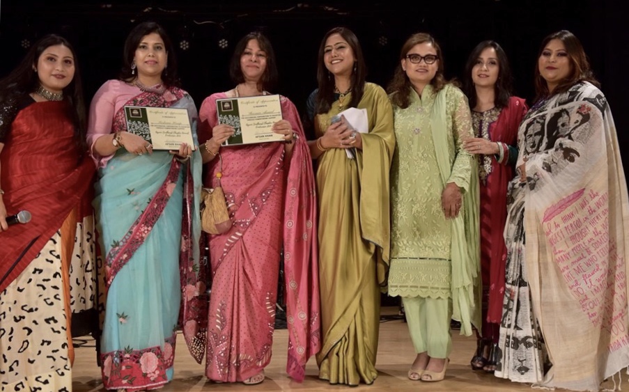 বাংলাদেশের প্রথম প্রধানমন্ত্রী তাজউদ্দীন আহমদের জ্যেষ্ঠ কন্যা শিক্ষাবিদ ও লেখক শারমিন আহমদ রিপি এবং যুক্তরাষ্ট্রে বাংলাদেশি মালিকানাধীন সর্ববৃহৎ আইটি শিক্ষা প্রতিষ্ঠান পিপল এন টেকের প্রেসিডেন্ট, নারী উদ্যোক্তা ফারহানা হানিপের হাতে সম্মাননা তুলে দেন সংগঠনের প্রেসিডেন্ট আফসান খান।