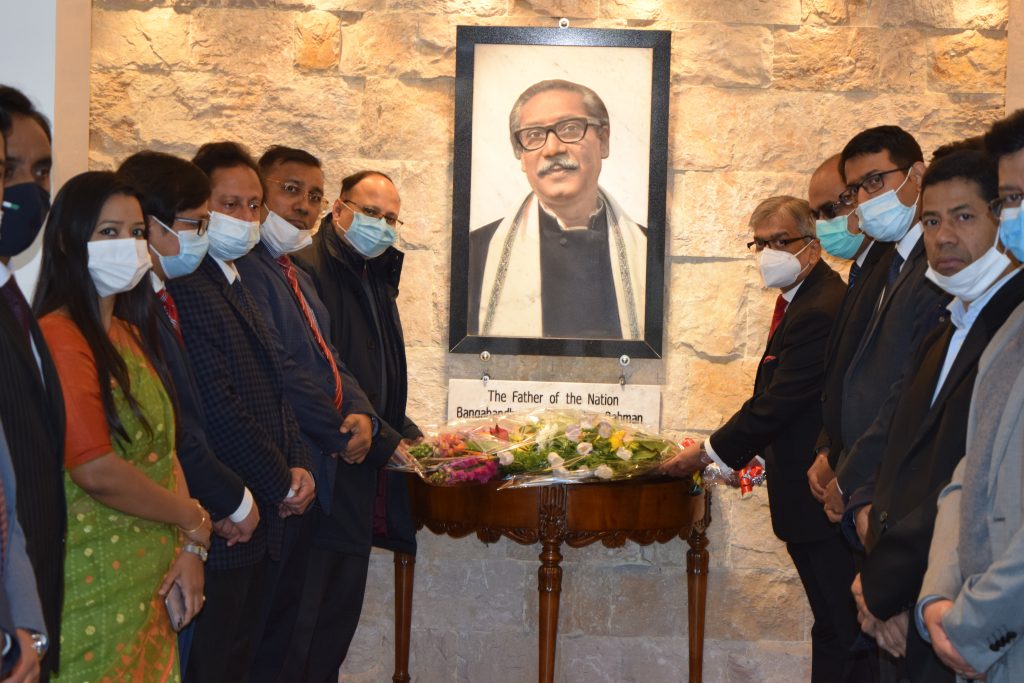 উল্লেখ্য, কোভিড মহামারীর ভয়াবহতার প্রেক্ষিতে ইতালি সরকার কর্তৃক আরোপিত কঠোর স্বাস্থ্যবিধি অনুসরণ করে শুধুমাত্র দূতাবাসের সদস্যদের উপস্থিতিতে সীমিত পরিসরে দূতাবাসে এবং অনলাইন প্লাটফর্ম ZOOM এ অনুষ্ঠানটি আয়োজন করা হয়।
