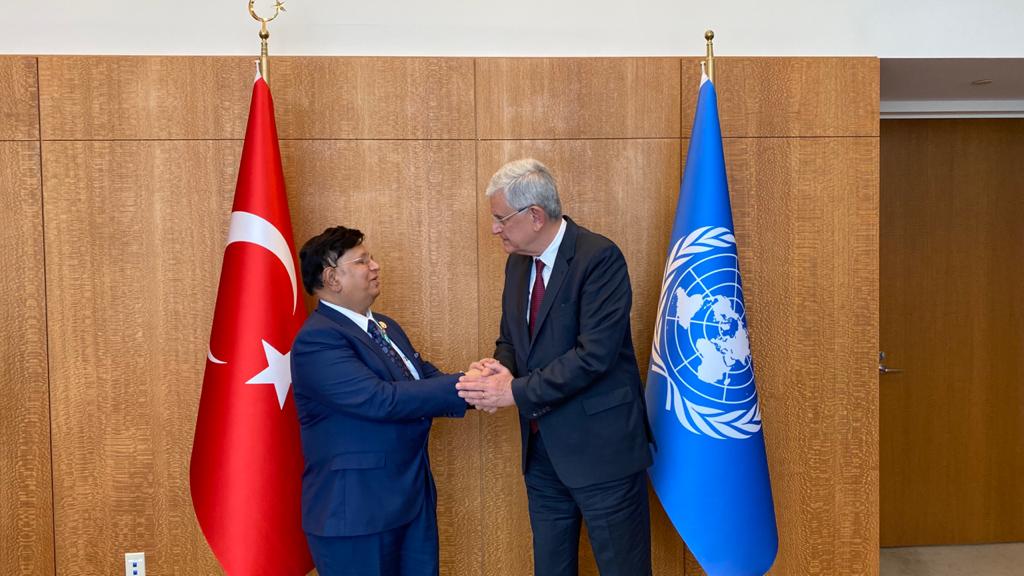 এদিকে বিকালে জাতিসংঘ সাধারণ পরিষদের সভাপতি (পিজিএ) ভলকান বজকির এর সাথে বৈঠক করেন পররাষ্ট্রমন্ত্রী ড. এ. কে আব্দুল মোমেন। অত্যন্ত আন্তরিকতাপূর্ণ আলোচনায় রোহিঙ্গা সমস্যা, জলবায়ু পরিবর্তন এবং কোভিড-১৯ এর টিকা সংশ্লিষ্ট বিষয়গুলো উঠে আসে। মিয়ানমার বিষয়ক বিশেষ সেশন আহ্বান করার জন্য পিজিএ-কে ধন্যবাদ জানান পররাষ্ট্রমন্ত্রী। কোভিড-১৯ এর ভ্যাকসিনকে গ্লোবাল পাবলিক গুড হিসেবে উল্লেখ করে পররাষ্ট্রমন্ত্রী এক্ষেত্রে সকলের অধিকার নিশ্চিতে তাঁর অফিসকে ব্যবহার করার জন্য অনুরোধ জানান। রাজধানী ঢাকায় অনুষ্ঠিতব্য বিশ্ব শান্তি সম্মেলনে যোগ দেওয়ার জন্য পিজিএ-কে আমন্ত্রণ জানান পররাষ্ট্রমন্ত্রী। সাধারণ পরিষদের সভাপতি রোহিঙ্গা ইস্যুতে বাংলাদেশের মানবিক ভূমিকার জন্য ধন্যবাদ জানান। এছাড়া জাতিসংঘ সংশ্লিষ্ট বিভিন্ন ইস্যুতে তাঁর অফিসকে সহযোগিতার জন্য বাংলাদেশের প্রতি কৃতজ্ঞতা জানান তিনি।