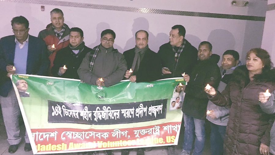 শহীদ বুদ্ধিজীবি দ্বিবসের প্রথম প্রহরে যুক্তরাষ্ট্র স্বেচ্ছাসেবক লীগের প্রদীপ প্রজ্জলন