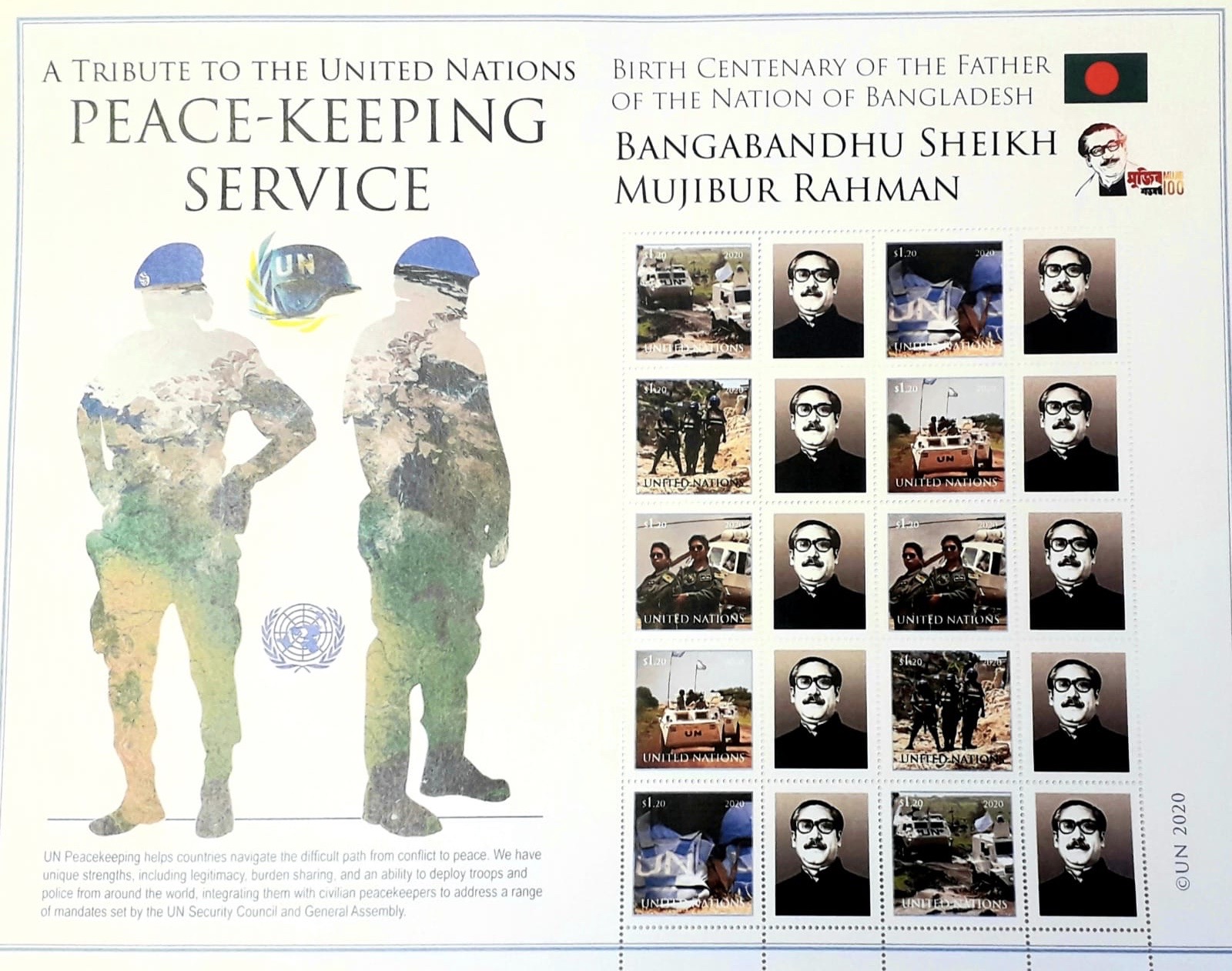 শান্তিরক্ষী দিবসে বাঙালি জাতির পিতা বঙ্গবন্ধুর জন্মশতবাষির্কী উপলক্ষ্যে স্মারক ডাকটিকিট অবমুক্ত জাতিসংঘের