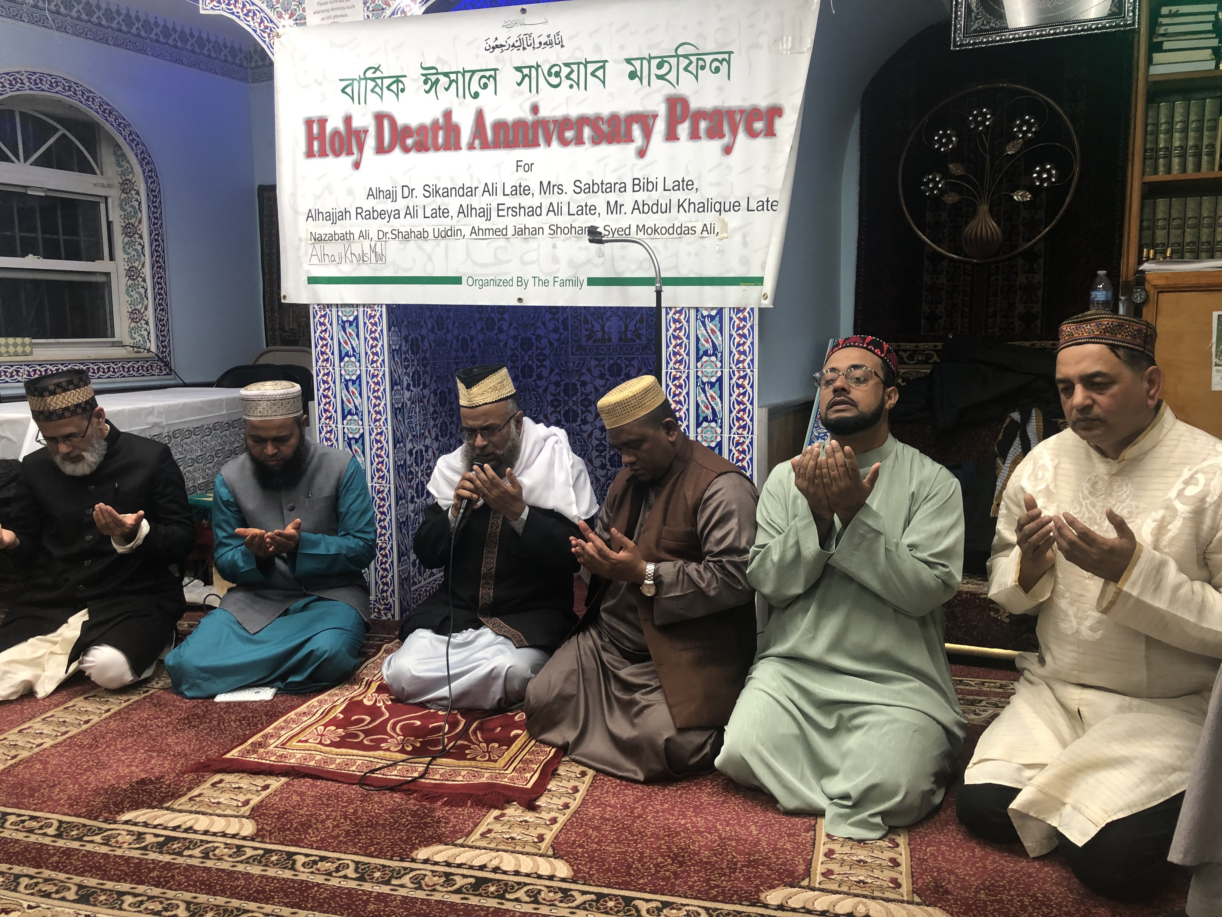 দোয়া ও মিলাদ মাহফিল পরিচালনা করেন পার্কচেস্টার জামে মসজিদের খতীব মাওলানা মো: মাঈনুল ইসলাম, বাংলাবাজার জামে মসজিদের খতীব মাওলানা আবুল কাশেম এয়াহইয়া, ওয়েস্ট ব্রঙ্কস জামে মসজিদ অ্যান্ড ইসলামিক সেন্টার অব আমেরিকার খতিব হাফেজ জমসেদ হোসেন, মাওলানা রহমত উল্লাহ, হাফিজ ওহি চৌধুরী, হাফিজ জমির আলী প্রমুখ।