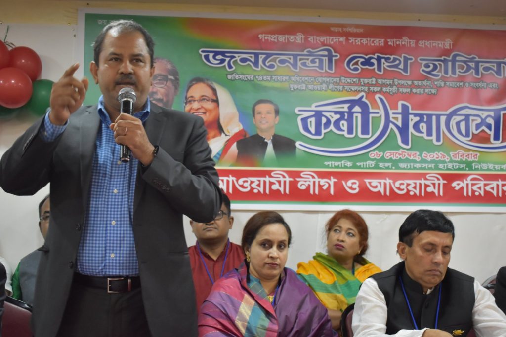 যুক্তরাষ্ট্র আওয়ামী লীগের মানবাধিকার বিষয়ক সম্পাদক মিসবাহ আহমেদের সভাপতিত্বে এবং শিল্প ও বাণিজ্য সম্পাদক ফরিদ আলমের পরিচালনায় এ কর্মী সমাবেশে লিখিত বক্তব্য পাঠ করেন সংগঠনের আইন বিষয়ক সম্পাদক এডভোকেট শাহ মো. বখতিয়ার।