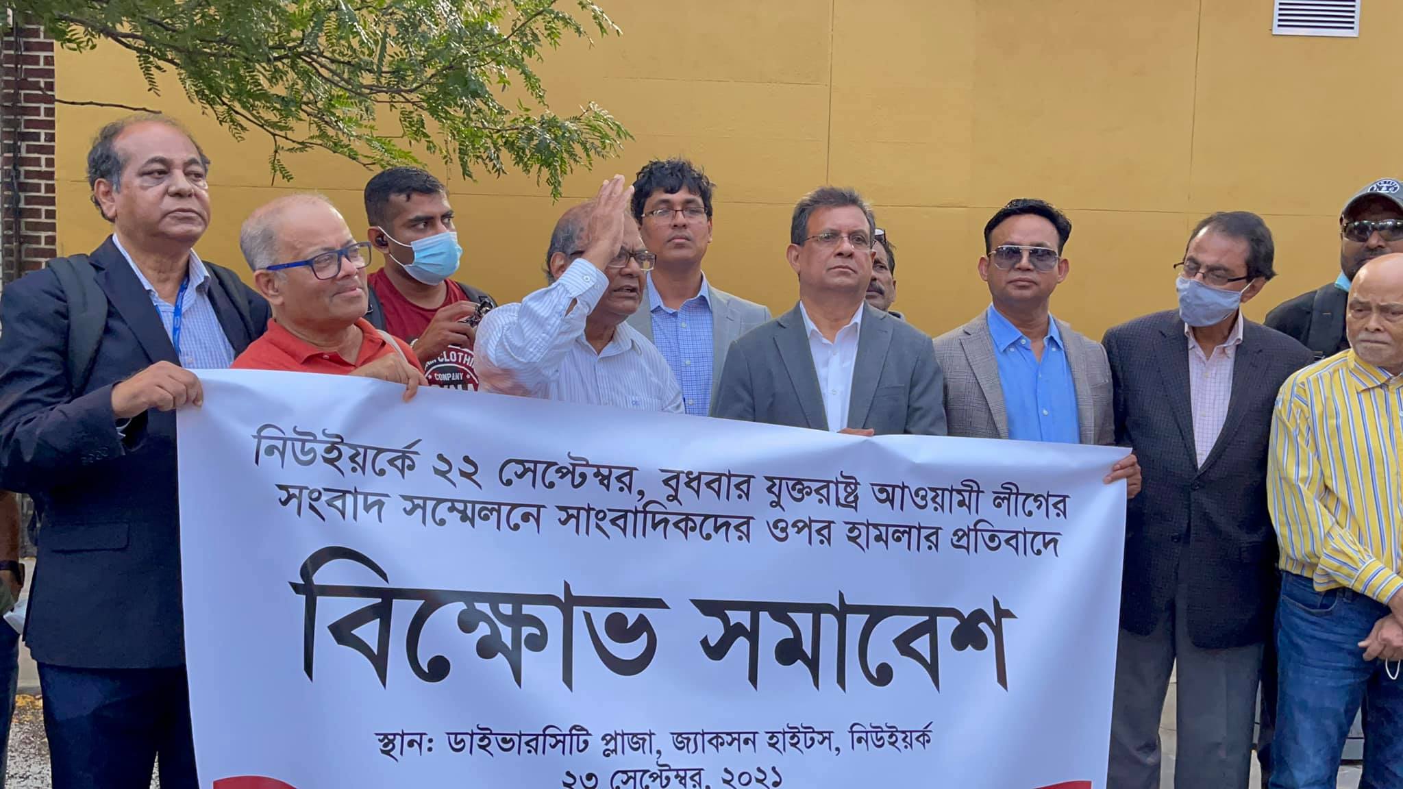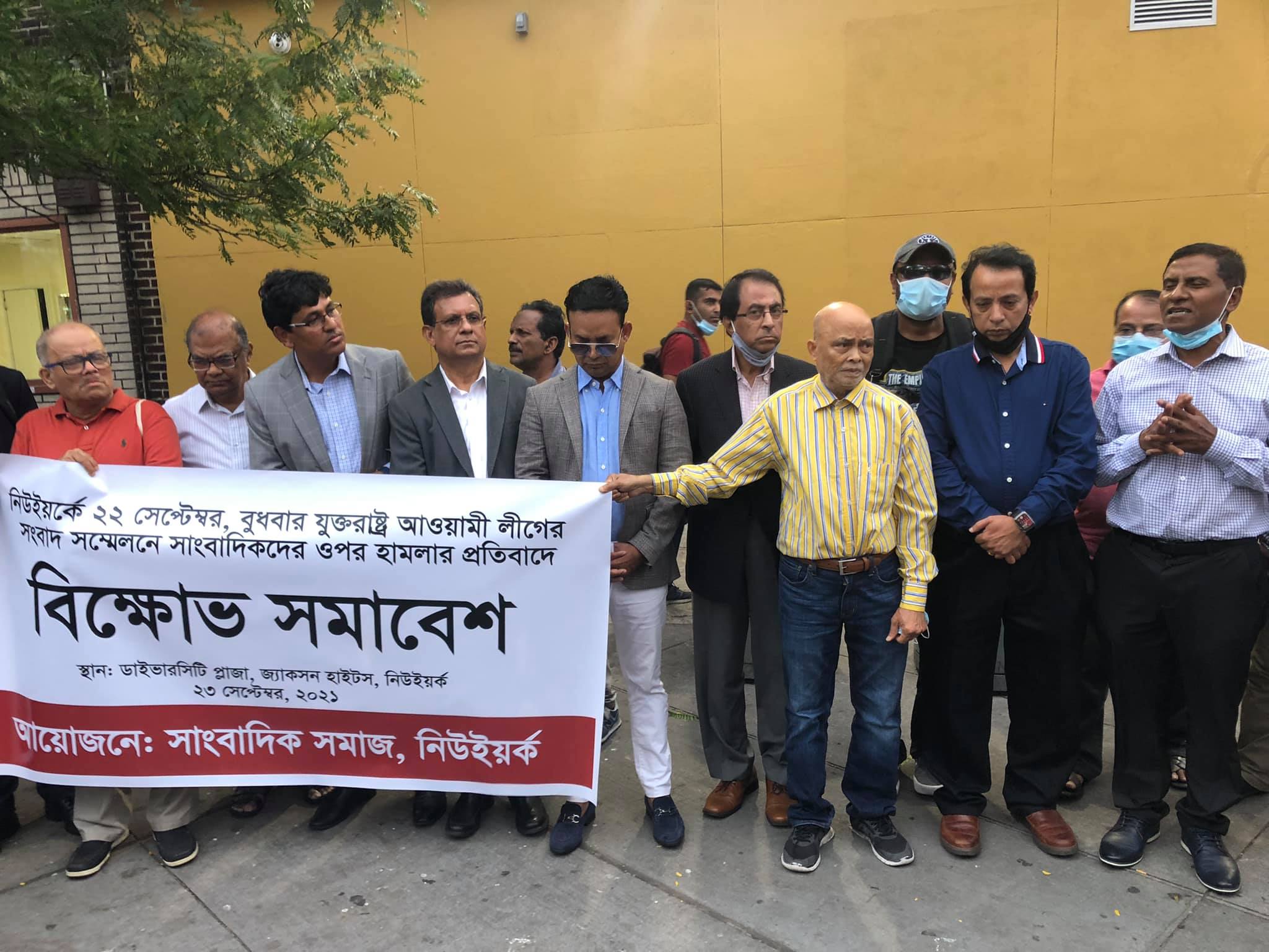 ‘সাংবাদিক সমাজ, নিউইয়র্ক’-এর ব্যানারে সিটির জ্যাকসন হাইটসের ডাইভারসিটি প্লাজায় আয়োজিত ব্যতিক্রমী এই প্রতিবাদ সমাবেশে অন্যান্যের মধ্যে সাপ্তাহিক আজকাল-এর প্রধান সম্পাদক মনজুর আহমদ, সাপ্তাহিক পরিচয় সম্পাদক নাজমুল আহসান, সাপ্তাহিক বাঙালী সম্পাদক কৌশিক আহমেদ, সাপ্তাহিক বাংলা পত্রিকা সম্পাদক ও টাইম টেলিভিশন-এর সিইও আবু তাহের, সাপ্তাহিক বাংলাদেশ সম্পাদক ডা. ওয়াজেদ এ খান, সাপ্তাহিক আজকাল-এর সম্পাদক জাকারিয়া মাসুদ, সাপ্তাহিক প্রবাস সম্পাদক মোহাম্মদ সাঈদ, সাপ্তাহিক দেশ সম্পাদক মিজানুর রহমান, ভয়েস অব আমেরিকার নিউইয়র্ক প্রতিনিধি আকবর হায়দার কিরন, সিনিয়র সাংবাদিক শেখ সিরাজুল ইসলাম ও মনোয়ারুল ইসলাম, বাংলা টিভি’র মীর ওয়াজেদ এ শিবলী, সাপ্তাহিক ঠিকানা’র বার্তা সম্পাদক ও দৈনিক ইত্তেফাক-এর বিশেষ প্রতিনিধি শহীদুল ইসলাম, প্রথম আলো’র মঞ্জুরুল হক, রওশন হক প্রমুখ বক্তব্য রাখেন।