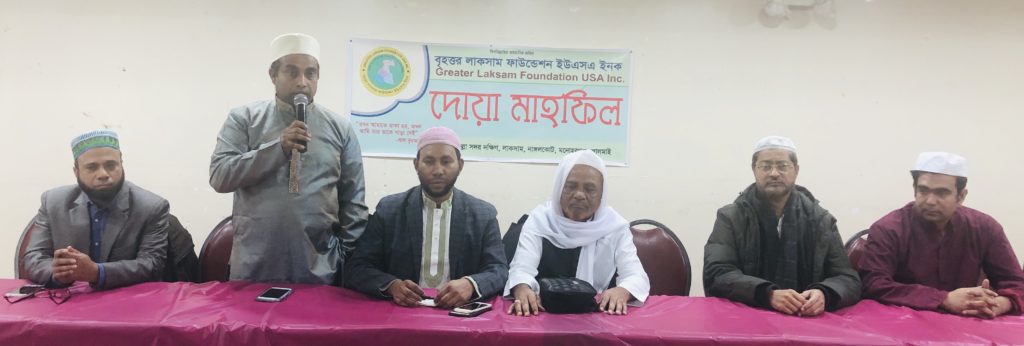 ইউএসএনিউজঅনলাইন.কম ডেস্ক, নিউইয়র্ক : বৃহত্তর লাকসাম ফাউন্ডেশন ইউএসএ ইনকের সিনিয়র সহ সভাপতি মো: মশিউর রহমান মজুমদারের মাতা প্রয়াত মাসুমা আক্তারের বিদেহী আত্মার শান্তি কামনায় গত শনিবার নিউইয়র্কের জ্যাকসন হাইটস্ এ খাবার বাড়ি পালকি সেন্টারে বৃহত্তর লাকসাম ফাউন্ডেশনের উদ্যোগে এক দোয়া মাহফিলের আয়োজন করা হয়। সংগঠনের সভাপতি আব্দুল জলিল তিতুমীরের সভাপতিত্বে অনুষ্ঠিত দোয়া মাহফিলে মরহুমার মাগফেরাত কামনা করে দোয়া পরিচালনা করেন মাওলানা ফখরুল ইসলাম মাছুম। এতে বক্তব্য রাখেন, বিশিষ্ট ব্যবসায়ী আক্তরুজ্জামান, বাংলাদেশ সোসাইটির সাধারণ সম্পাদক মো: রুহুল আমিন সিদ্দিকী, সংগঠনের অন্যতম কার্যকরী সদস্য এবিএম হুমায়ন কবির। দোয়া মাহফিলে অন্যান্যের মধ্যে উপস্থিত ছিলেন বাংলাদেশ সোসাইটির কার্যকরি সদস্য সাদি মিন্টু ও আজাদ বাকির, ফাউন্ডেশনের সাবেক সেক্রেটারি নূরে আলম, ফাউন্ডেশনের কর্মকর্তা,বিশিষ্টজন এবং বিভিন্ন গণমাধ্যমের প্রতিনিধি।