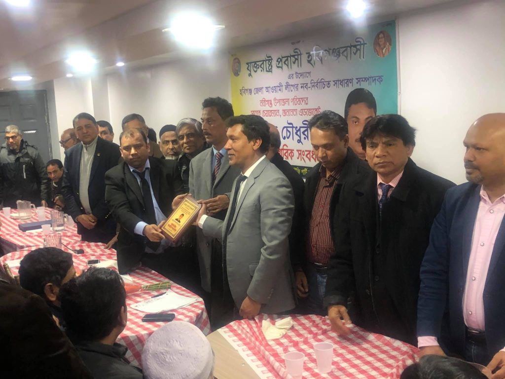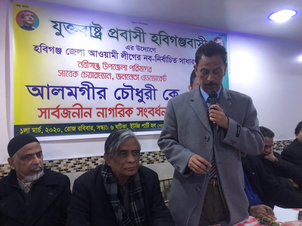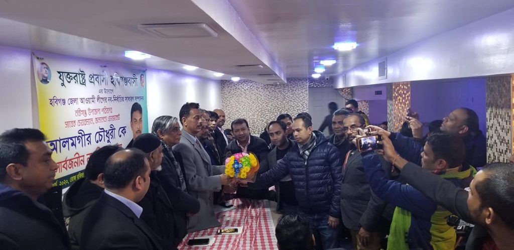সাবেক উপজেলা চেয়ারম্যান আলমগীর চৌধুরীকে যুক্তরাষ্ট্র প্রবাসী হবিগঞ্জবাসীর সংবর্ধনা